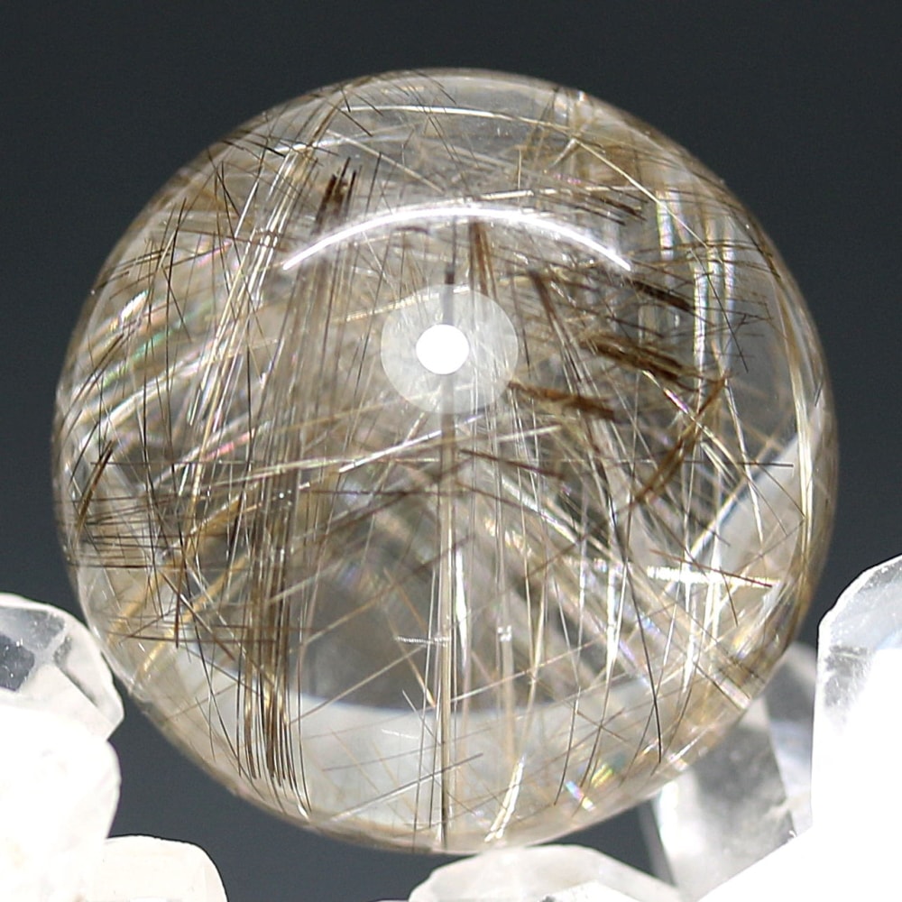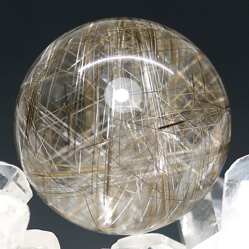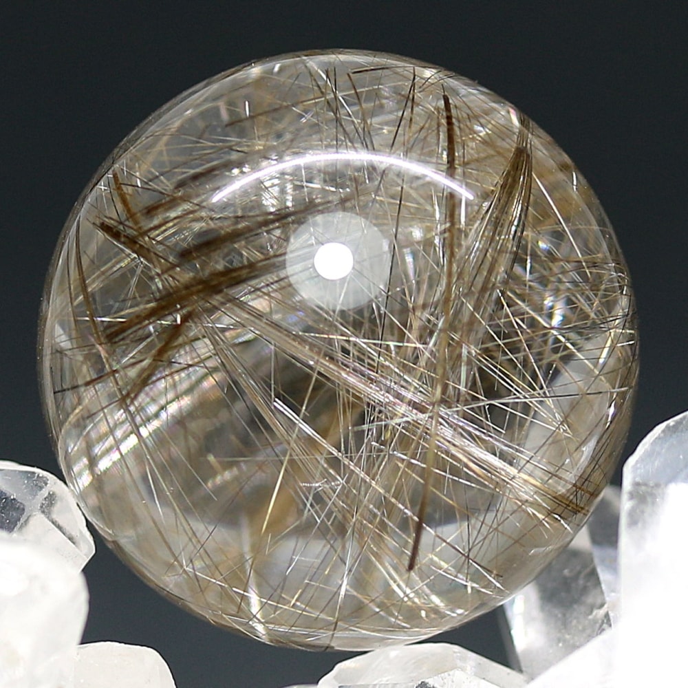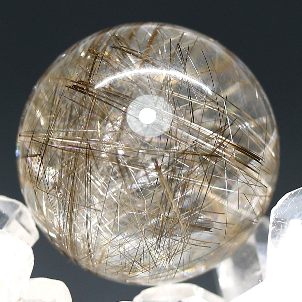 こちらのお品は、“シルバーに近い輝きを見られる” 今ご用意できるトップ品質のシルバールチルクォーツ丸玉となります。