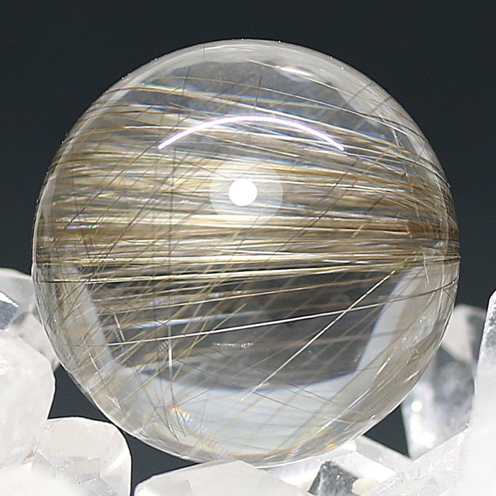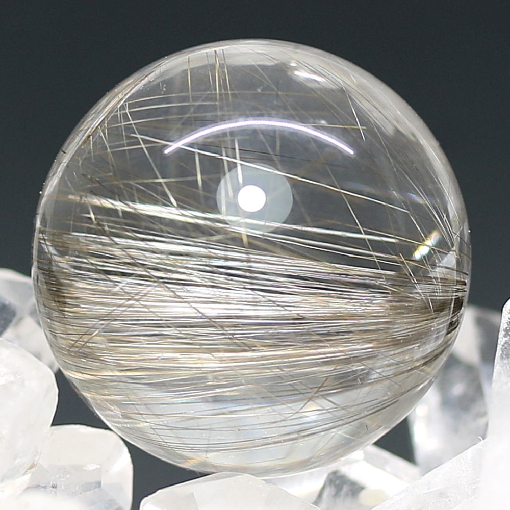 こちらのお品は、“シルバーに近い輝きを見られる” 今ご用意できるトップ品質のシルバールチルクォーツ丸玉となります。