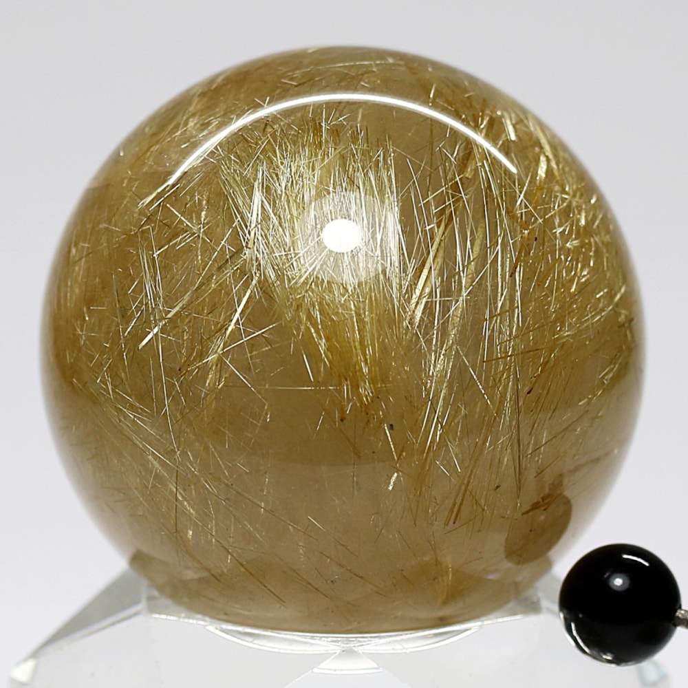 透明度高い水晶内部に内包される、毛並みのように細いルチル針状結晶がスフィアを回すたびに縦横無尽に煌びやかに輝く姿は “これぞルチル” と思える逸品です。