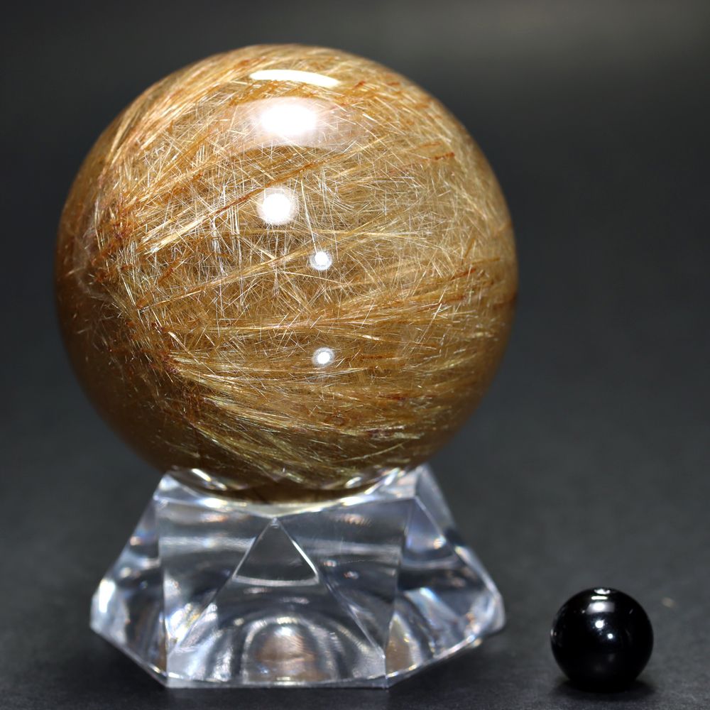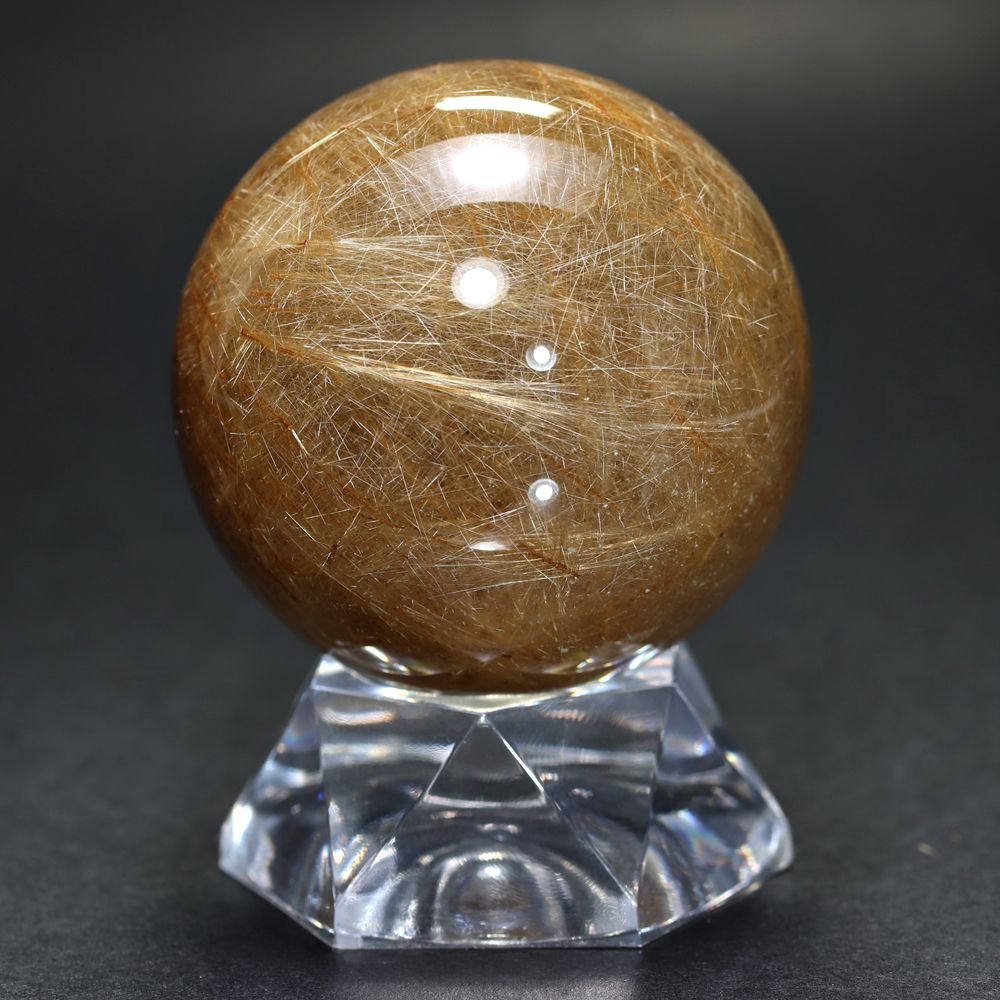 [特別価格/3A]ブラジル産ゴールドルチルクォーツ丸玉/スフィア(球体直径49.4mm・高密度インクルージョン)