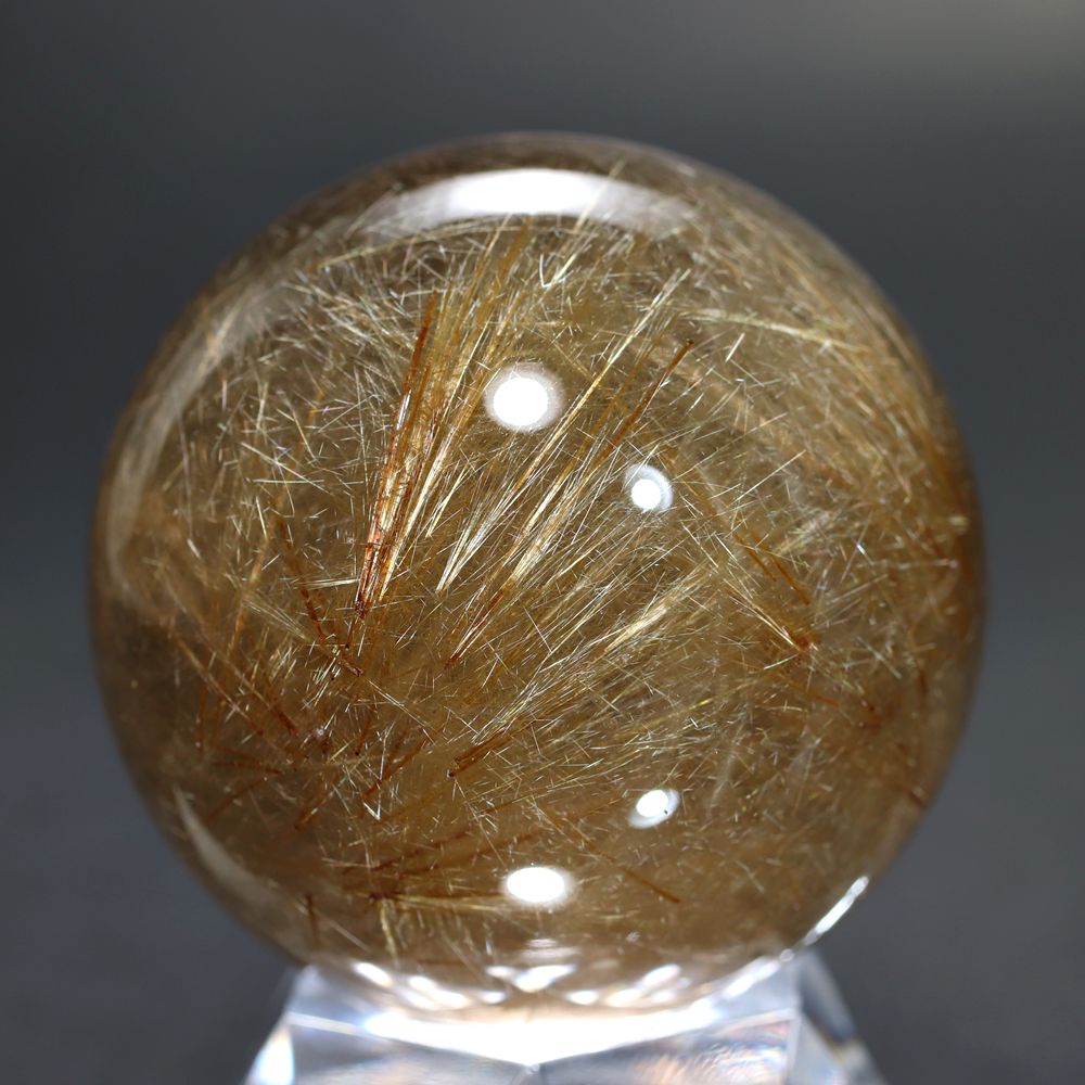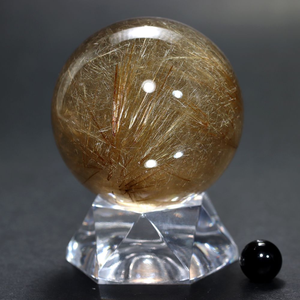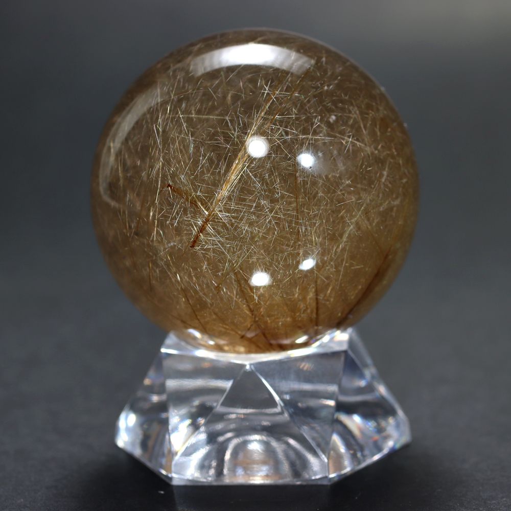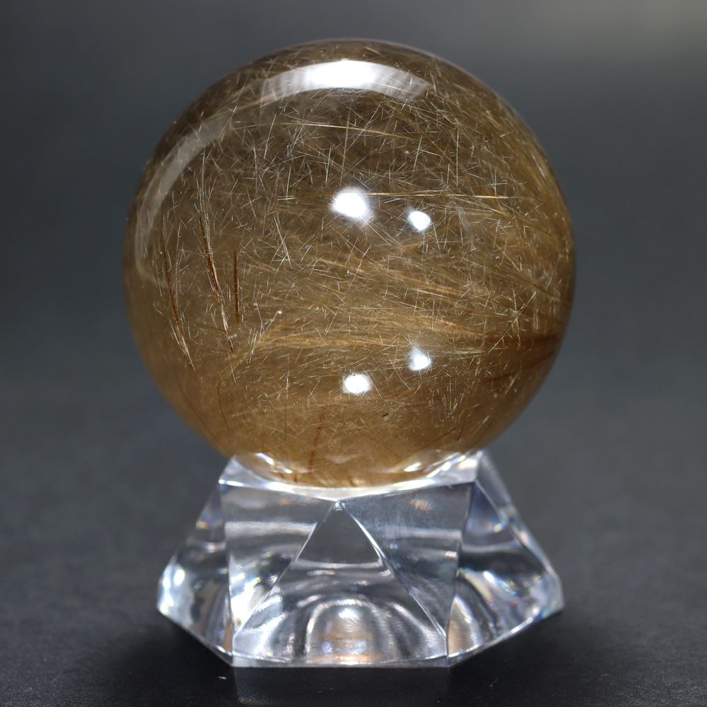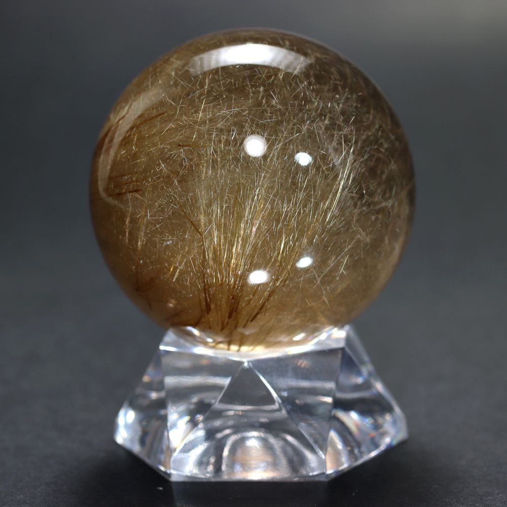 [特別価格/3A]ブラジル産ゴールドルチルクォーツ丸玉/スフィア(球体直径49.3mm)