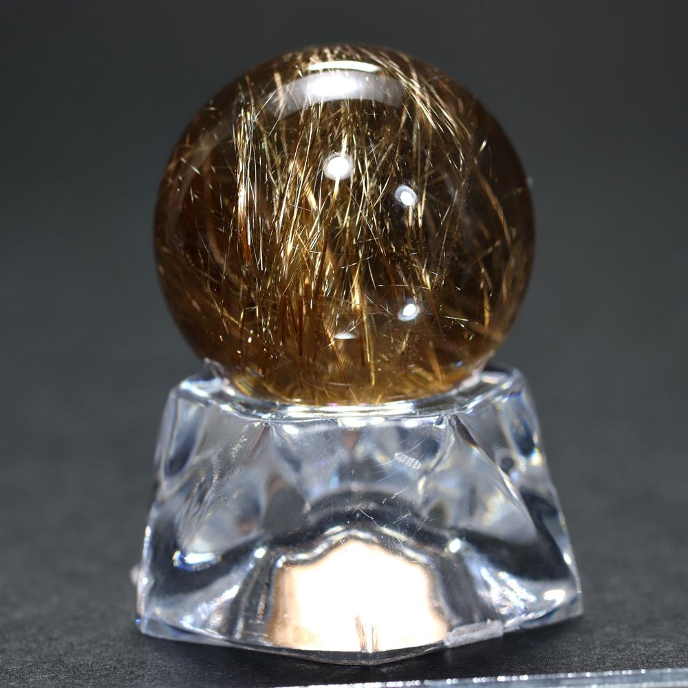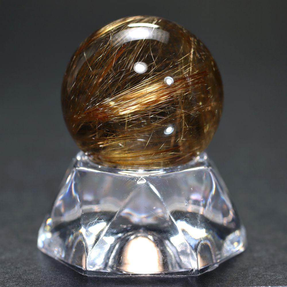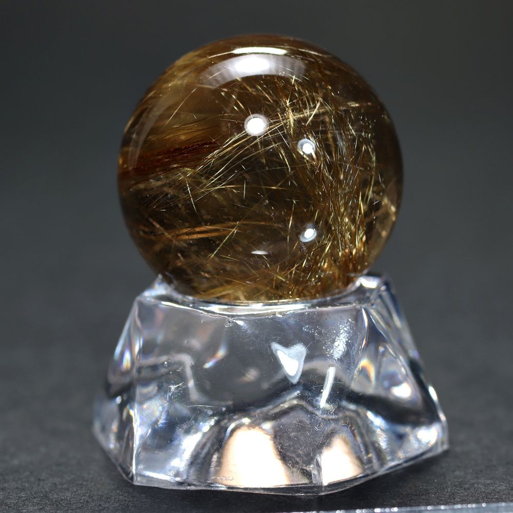 [高品質]ブラジル産ゴールドルチルクォーツ丸玉/スフィア(球体直径26.1mm)¥56,000クイックガイド送料