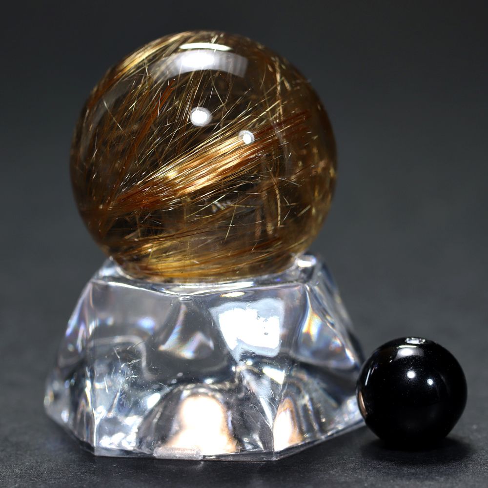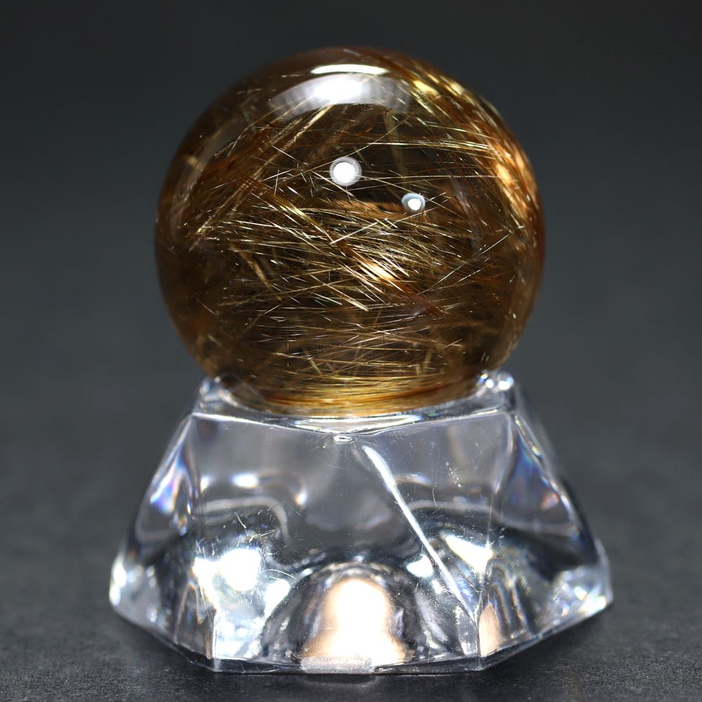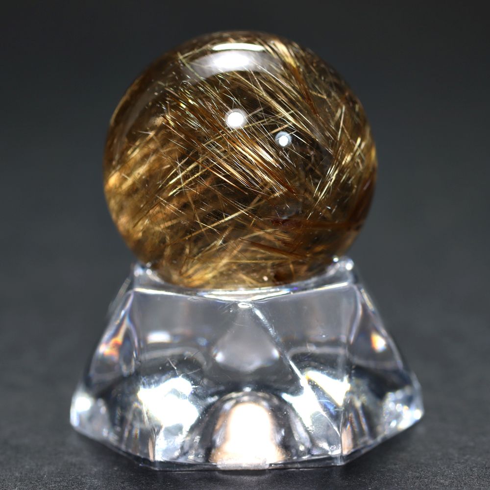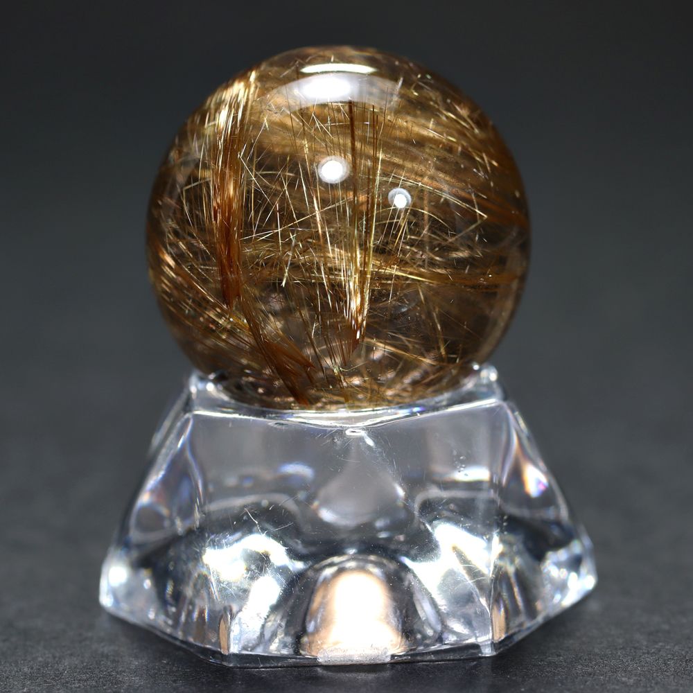 [高品質]ブラジル産ゴールドルチルクォーツ丸玉/スフィア(球体直径26.1mm)¥56,000クイックガイド送料