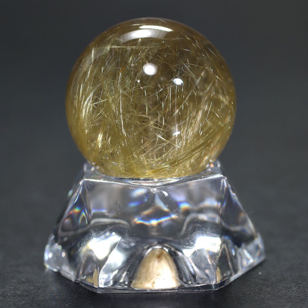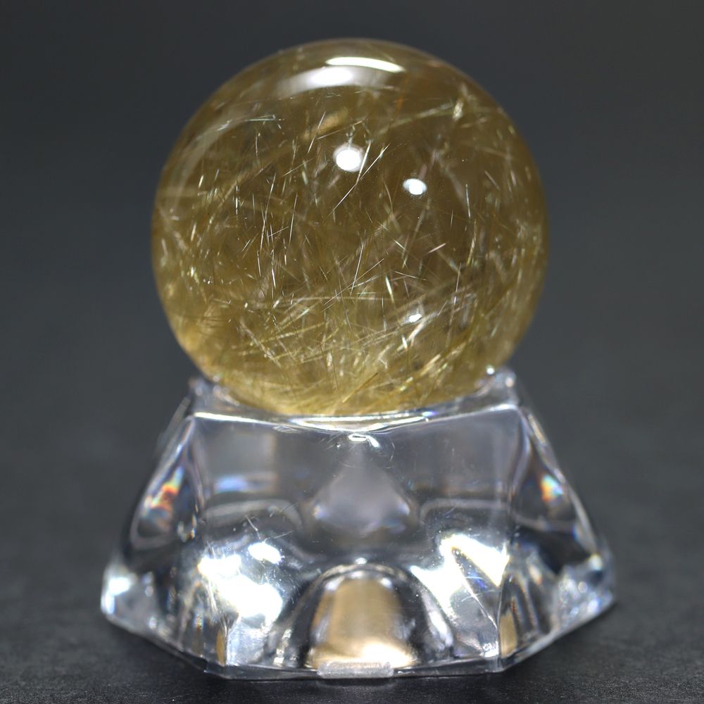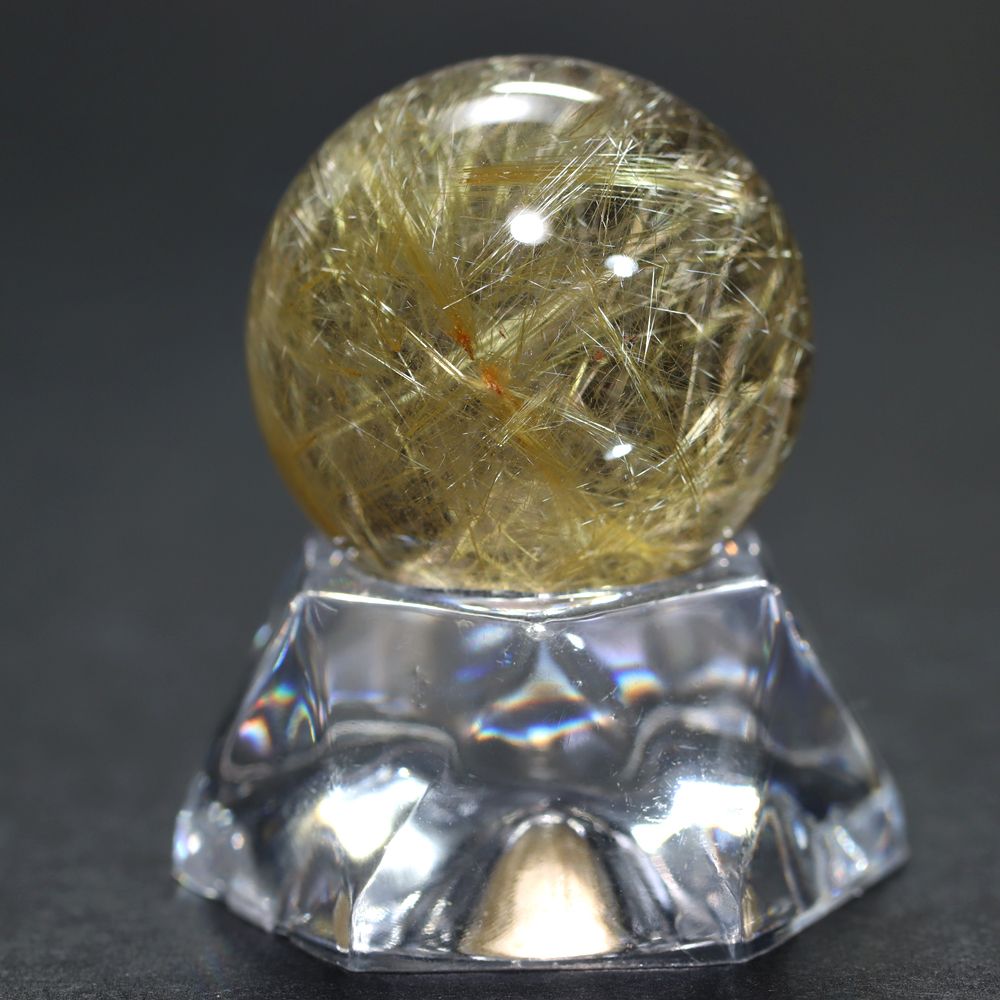 [高品質]ブラジル産ゴールドルチルクォーツ丸玉/スフィア(球体直径25.9mm)¥68,000クイックガイド送料