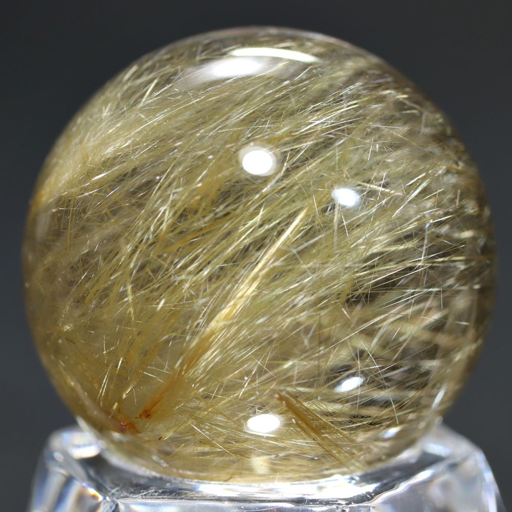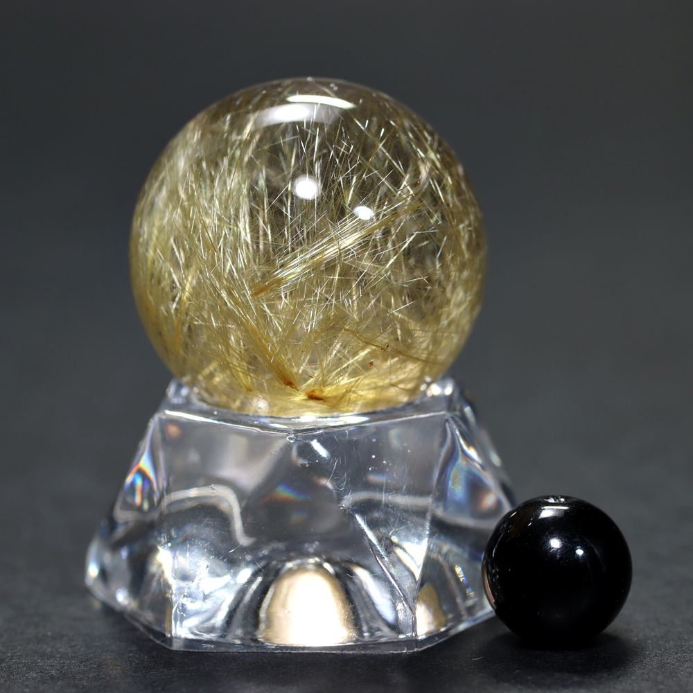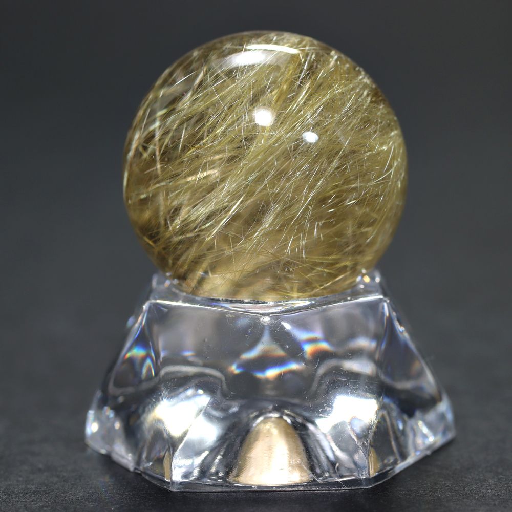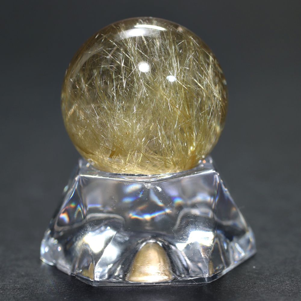 [高品質]ブラジル産ゴールドルチルクォーツ丸玉/スフィア(球体直径25.9mm)¥68,000クイックガイド送料