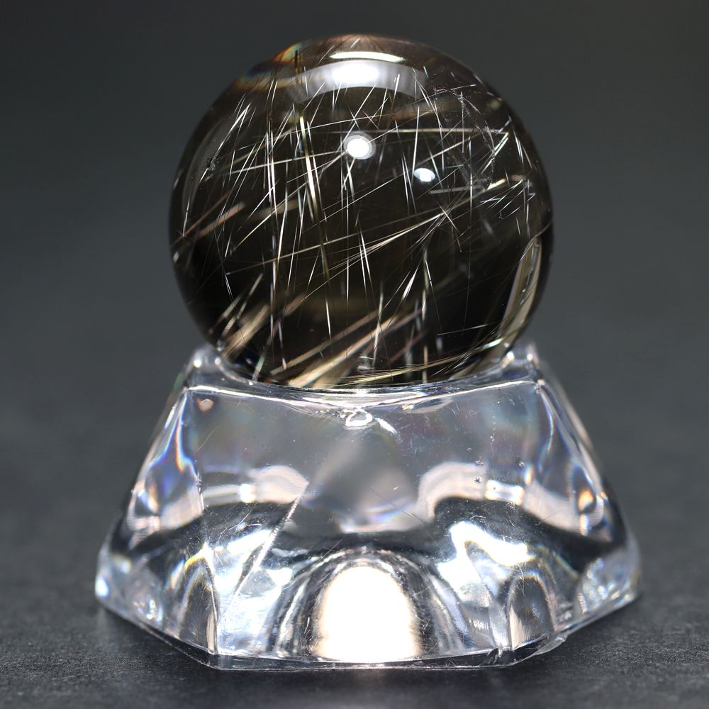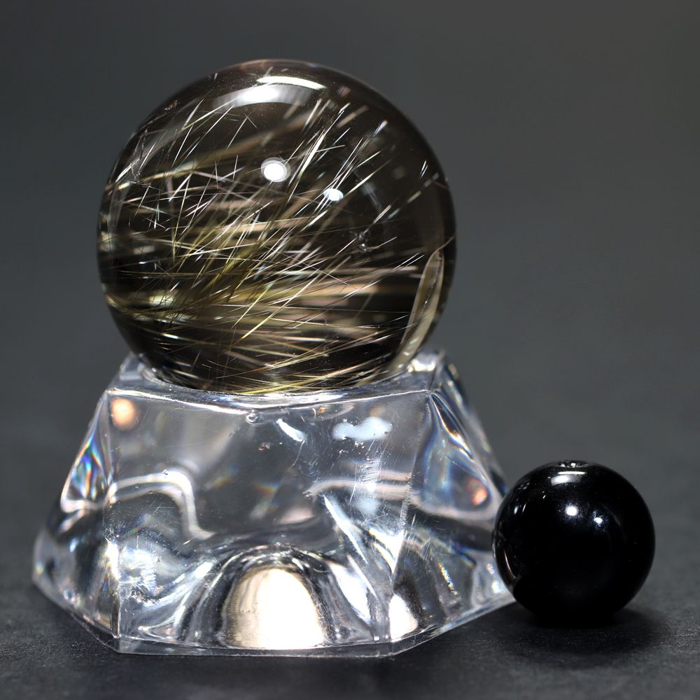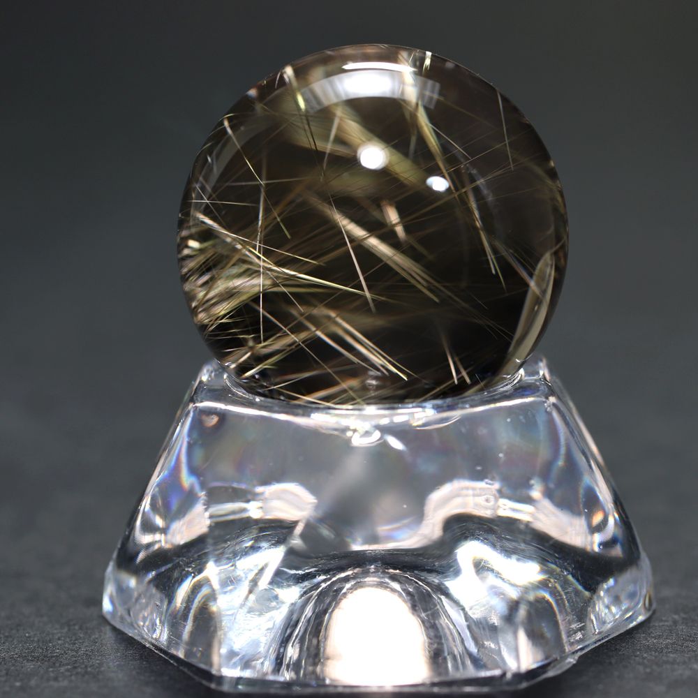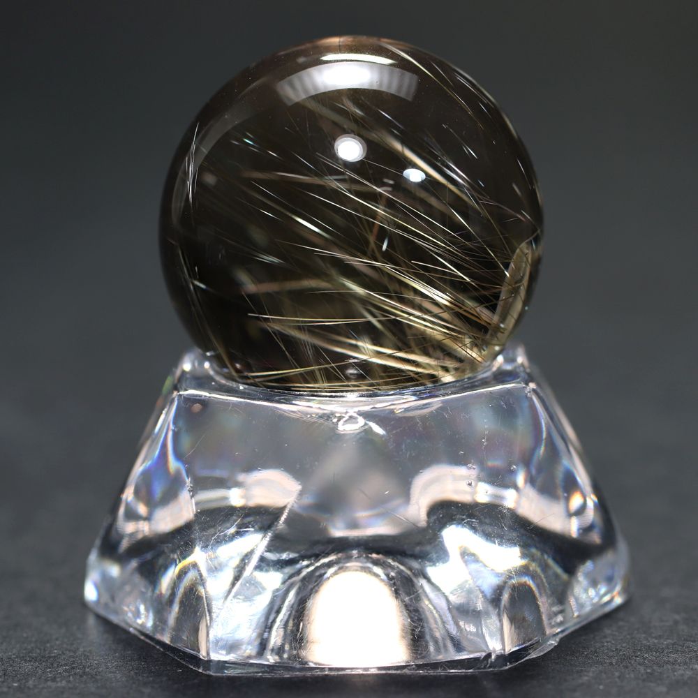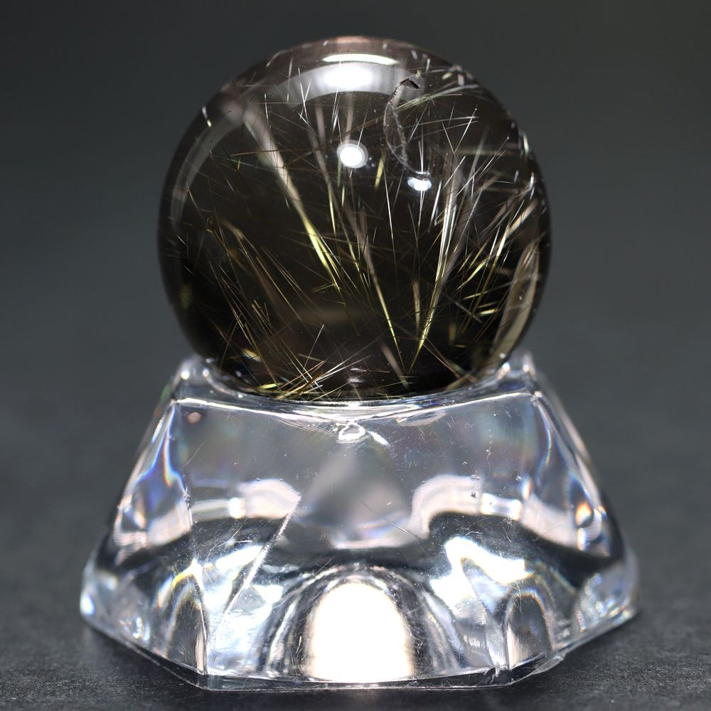 [超透明!高品質]ブラジル産ゴールドルチルクォーツ丸玉/ミニスフィア(球体直径23.6mm)¥43,000クイックガイド送料