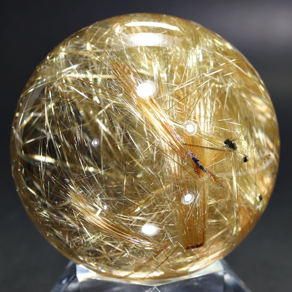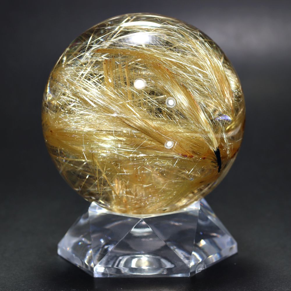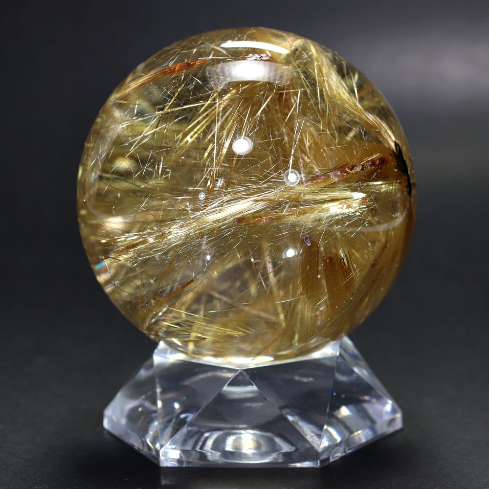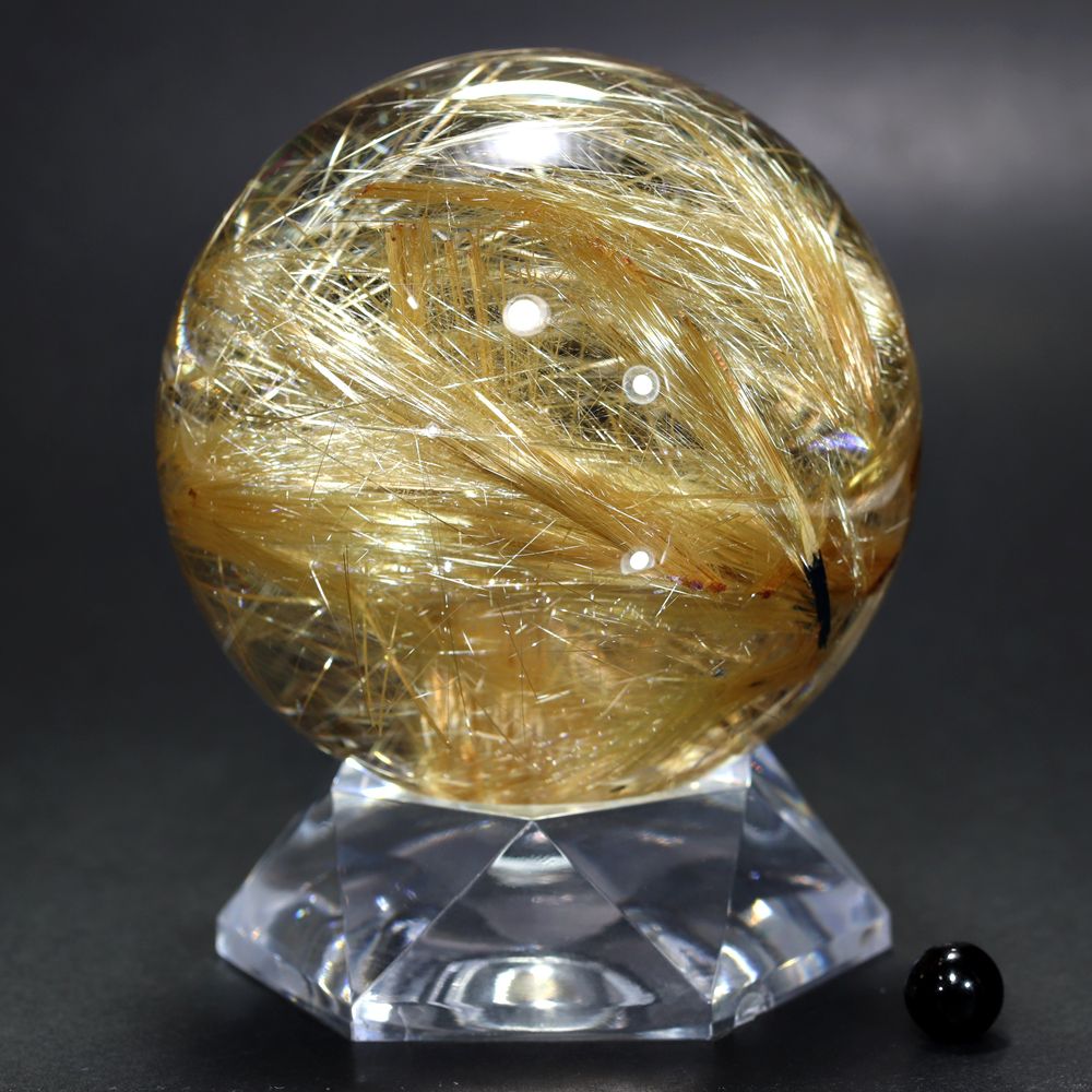 [希少大玉!トップクォリティ]ブラジル産タイチンルチルクォーツ丸玉/スフィア(球体球体直径82.8mm)★現品動画あり¥5,800,000クイックガイド送料