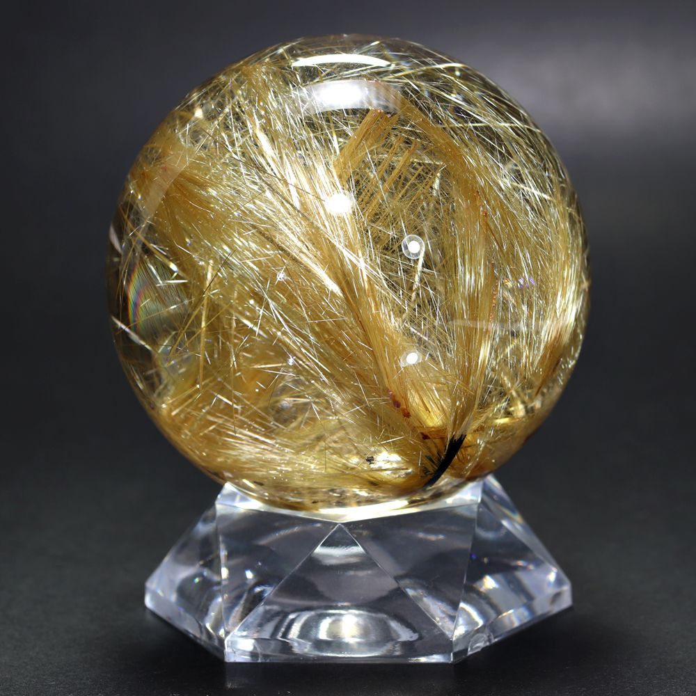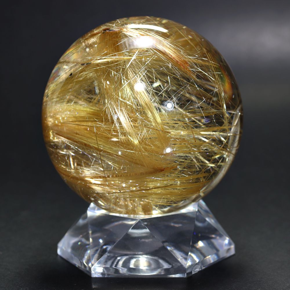 ご覧のお品は、大変希少なトップ品質のタイチンゴールドルチルクォーツ丸玉でございます。