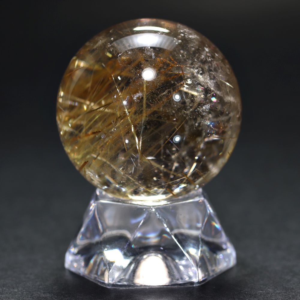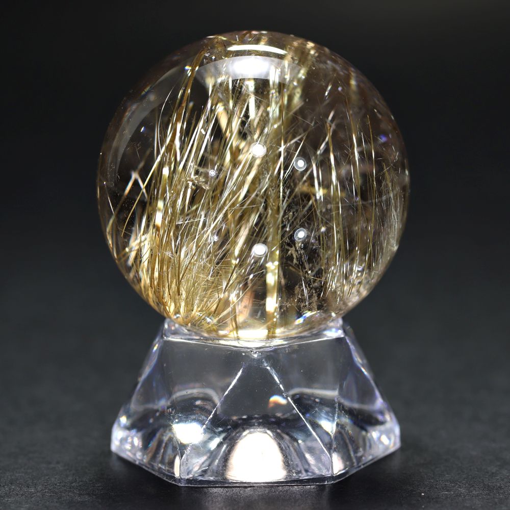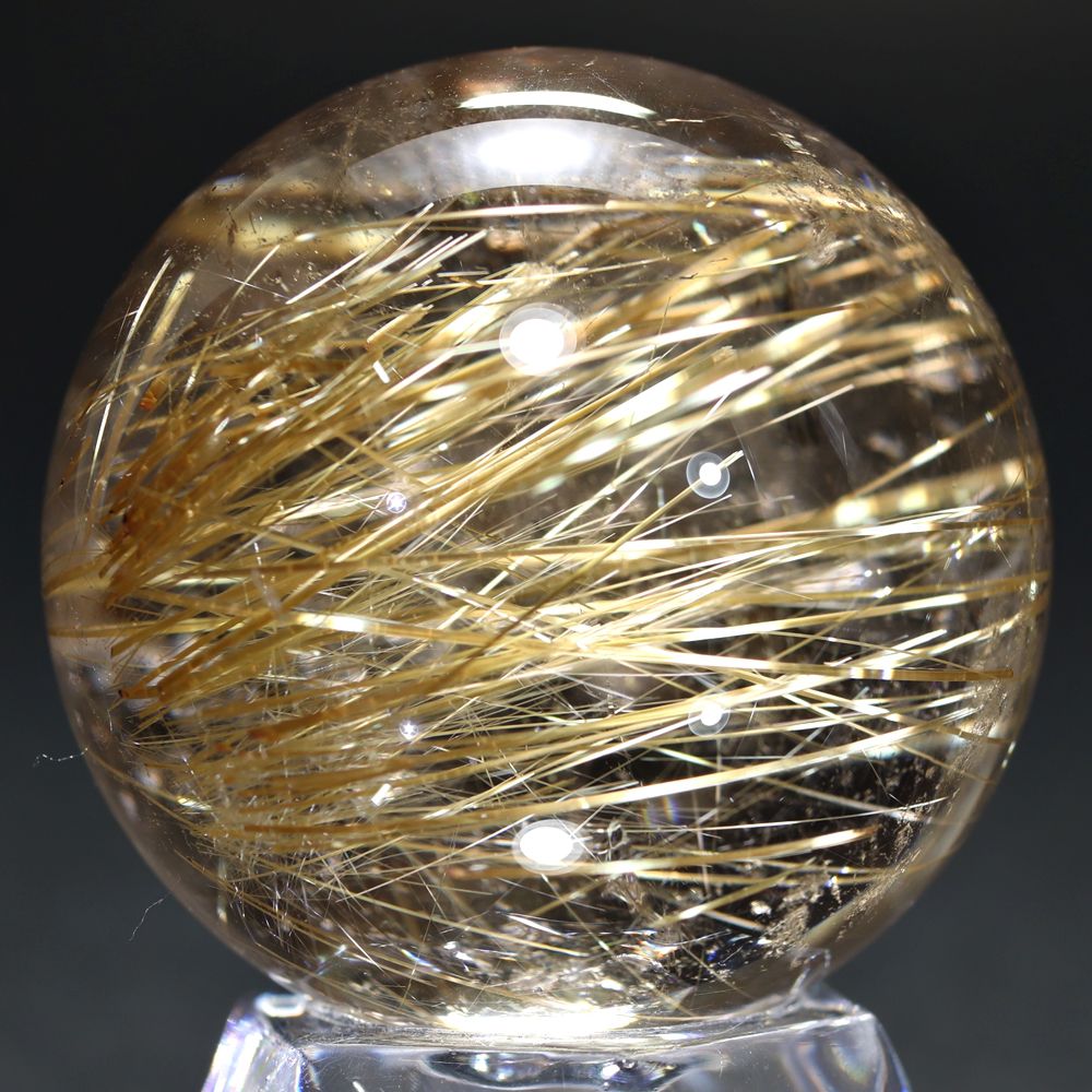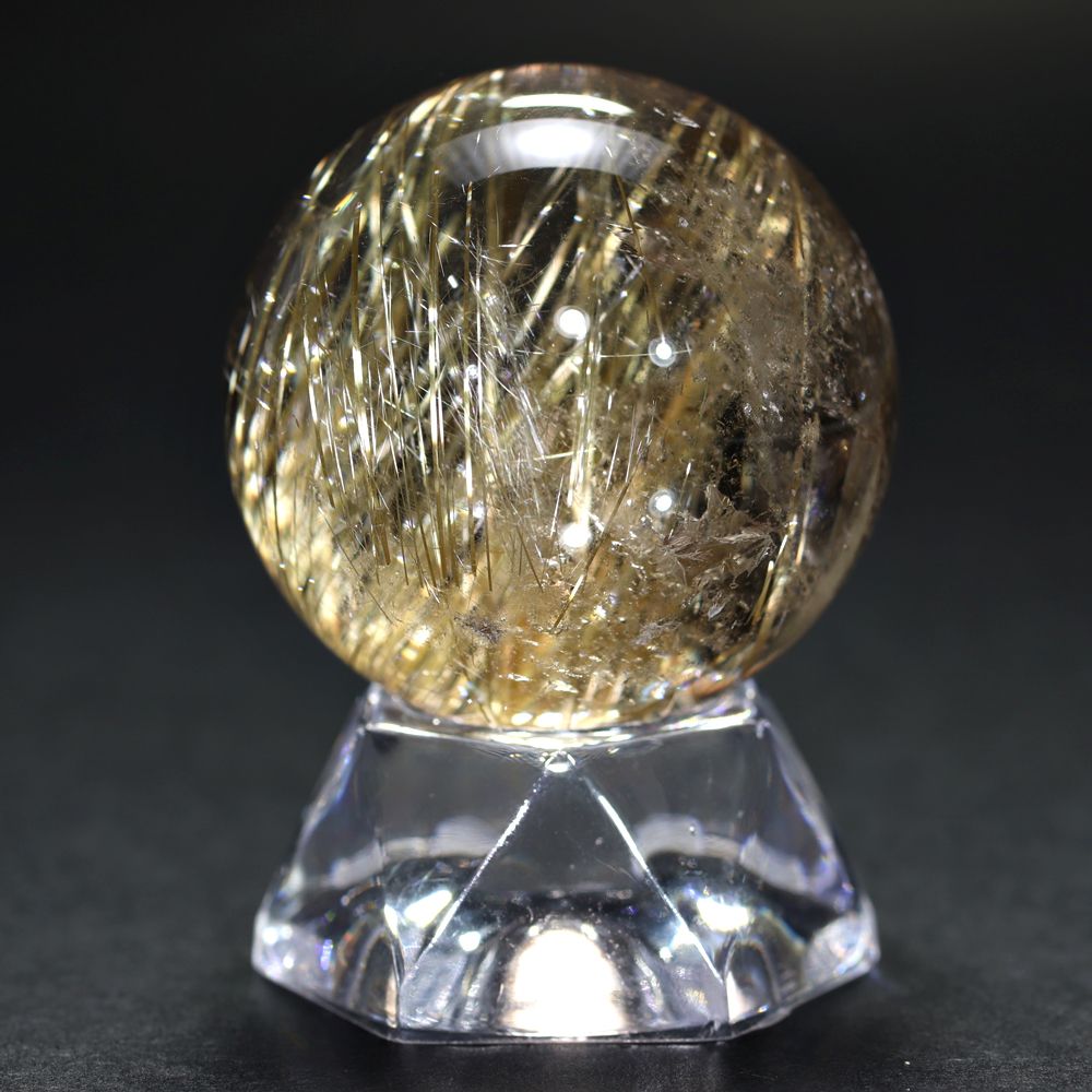 すべてのルチル結晶がこのように輝くわけではありませんので、一番重要な “輝き” を重視した価値あるルチルクォーツ丸玉と言えます!