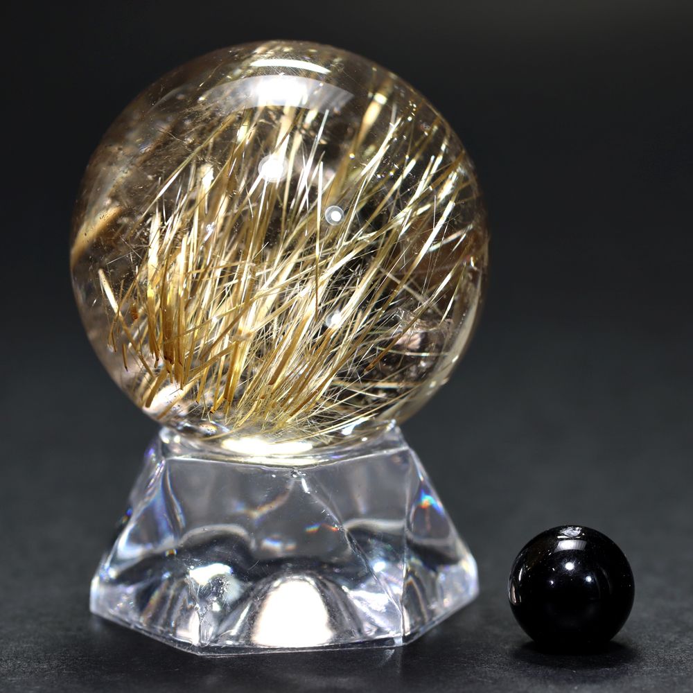 [高品質]ブラジル産タイチンルチルクォーツ丸玉/スフィア(球体直径36.2mm)★現品動画あり¥230,000クイックガイド送料