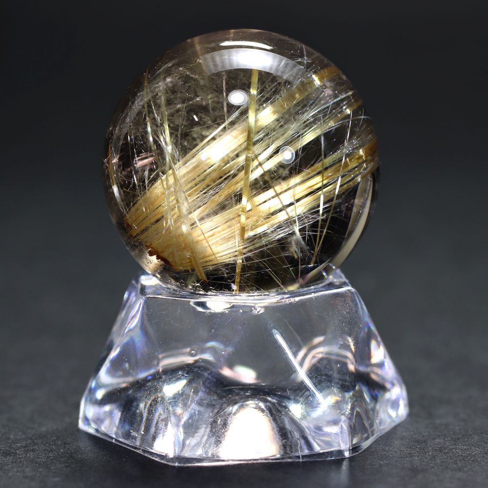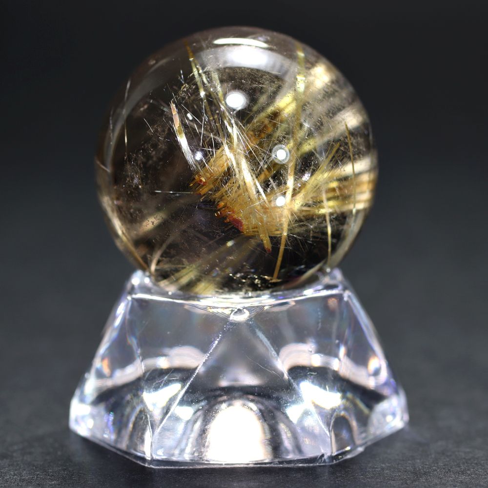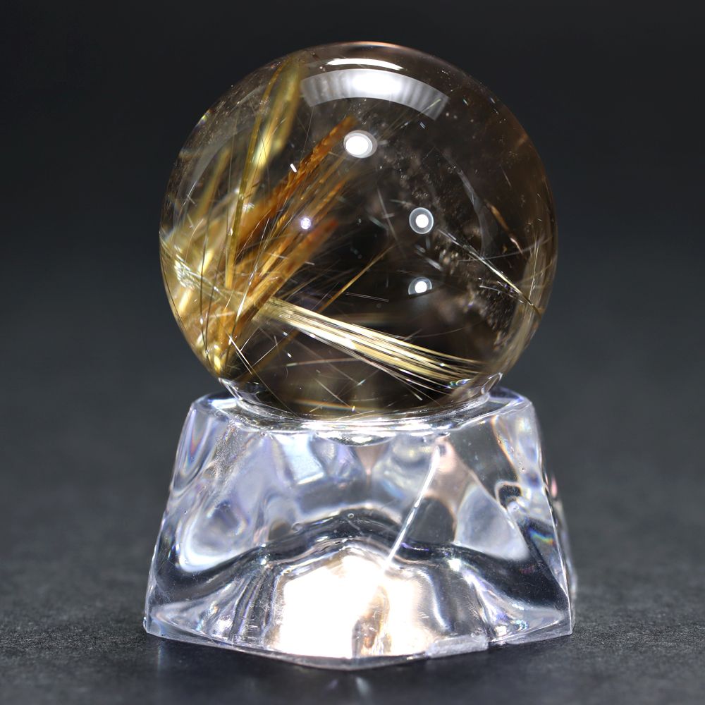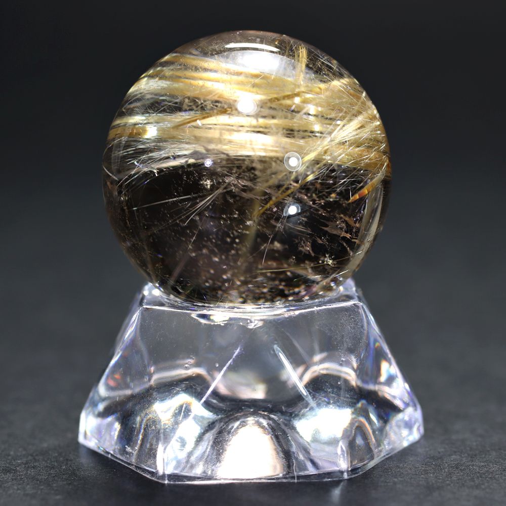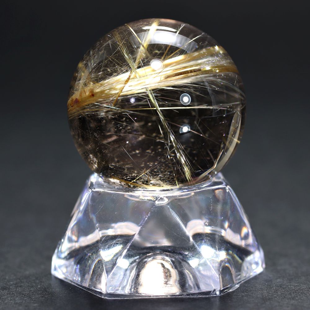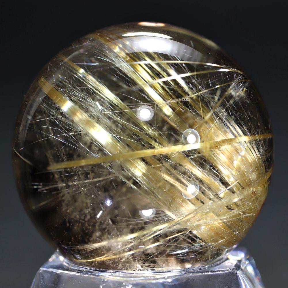 すべてのルチル結晶がこのような強い光彩を放つわけではありませんので、“輝き” を最重視される方にこそふさわしい、価値あるルチルクォーツ丸玉と言えます。