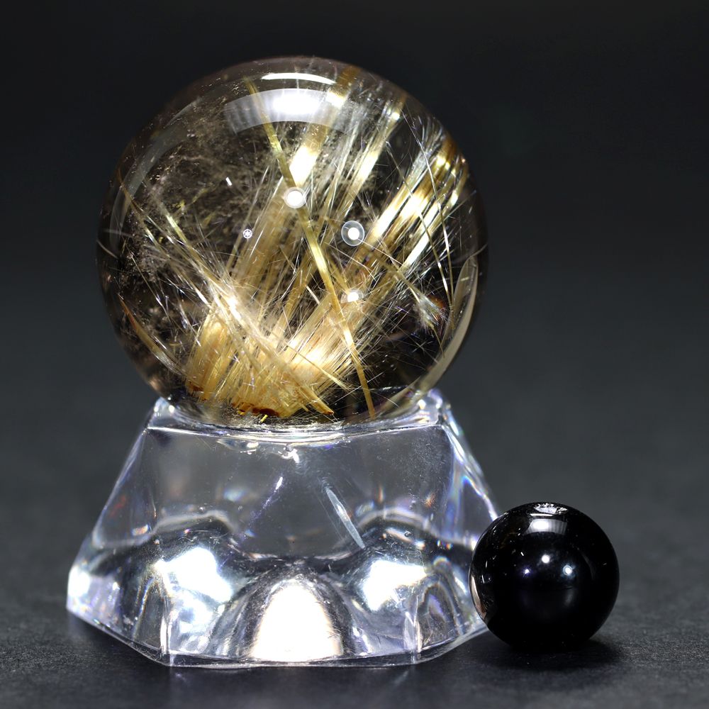 [高品質]ブラジル産タイチンルチルクォーツ丸玉/スフィア(球体直径28.2mm)¥88,000クイックガイド送料