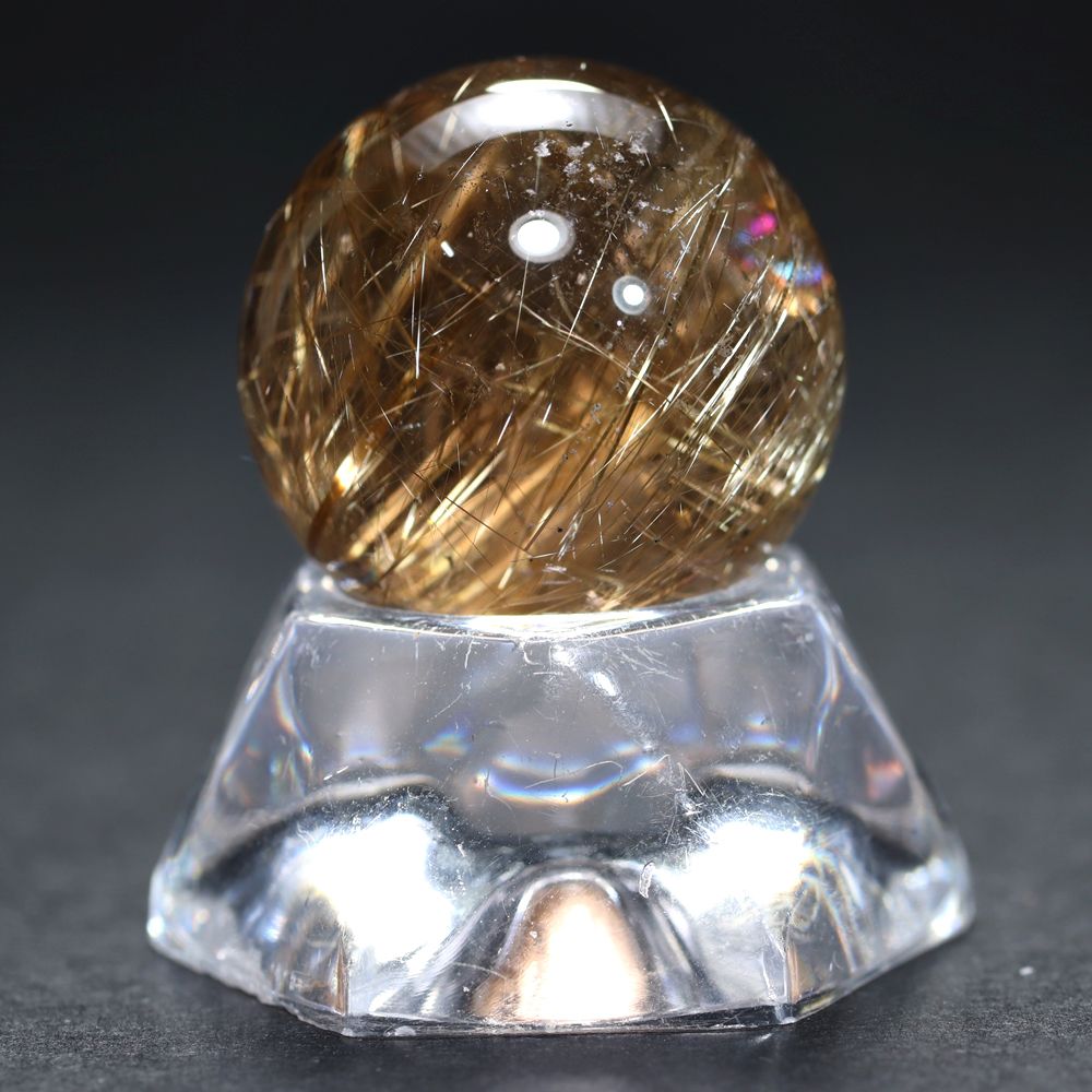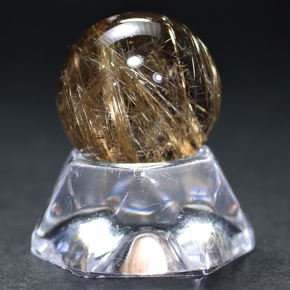 [3A++]ブラジル産タイチンルチルクォーツ丸玉/ミニスフィア(球体直径24.8mm)¥45,000クイックガイド送料