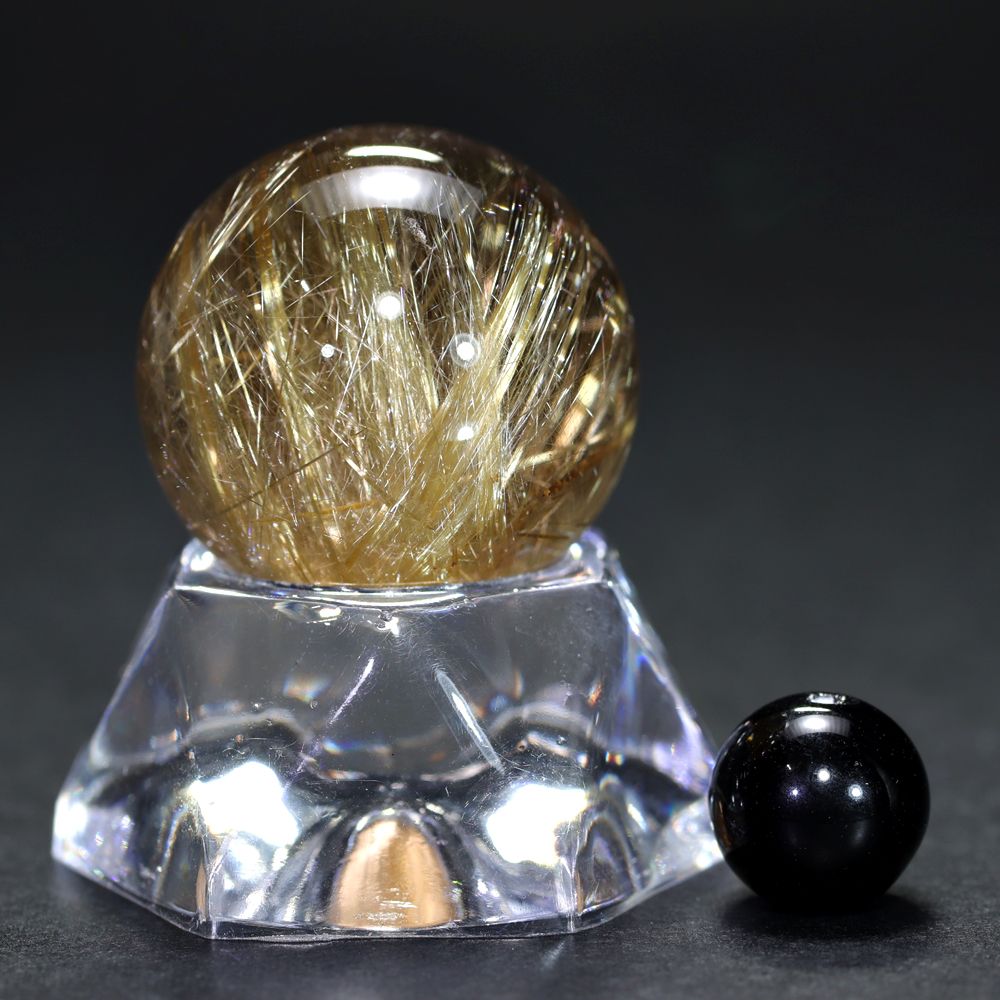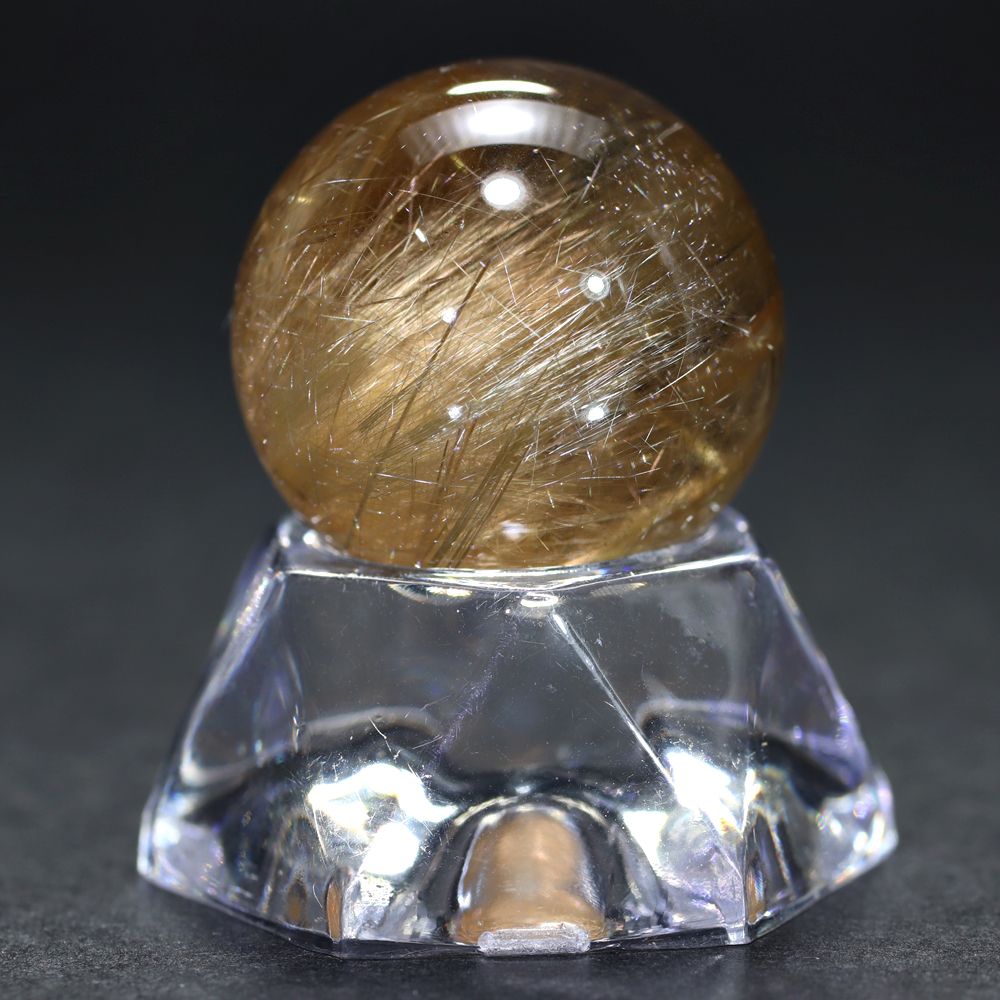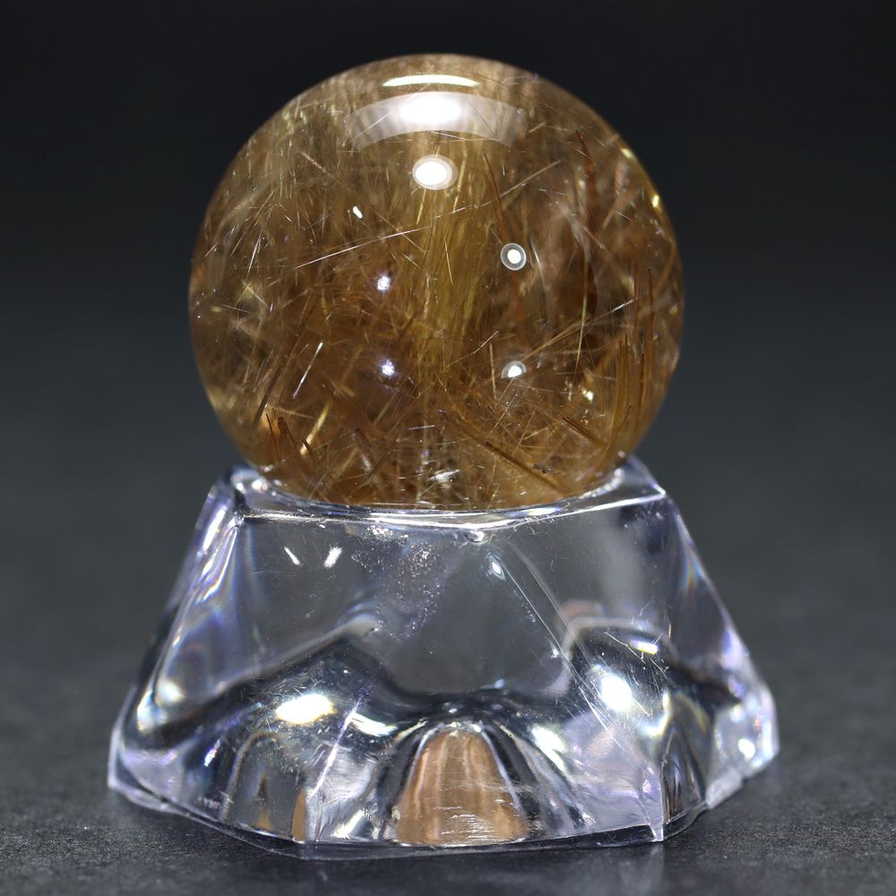 金色のタイチンルチル結晶がインクルージョンされた、高品質タイチンルチルクォーツの「ミニサイズ丸玉」でございます。