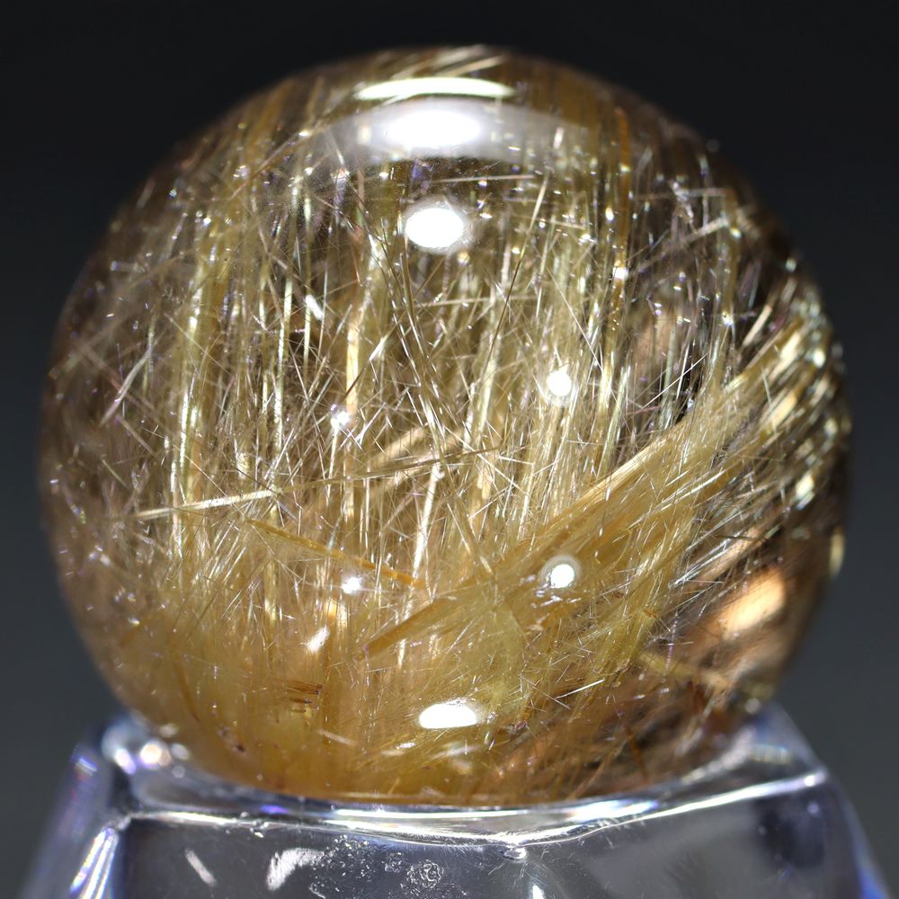 [高品質]ブラジル産タイチンルチルクォーツ丸玉/ミニスフィア(球体直径24.6mm)¥78,000クイックガイド送料