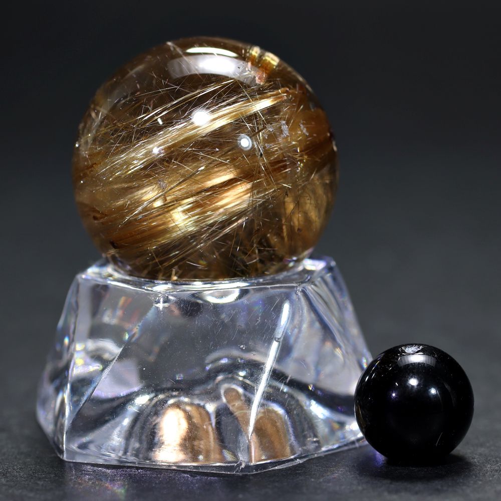 [高品質]ブラジル産タイチンルチルクォーツ丸玉/ミニスフィア(球体直径24.4mm)