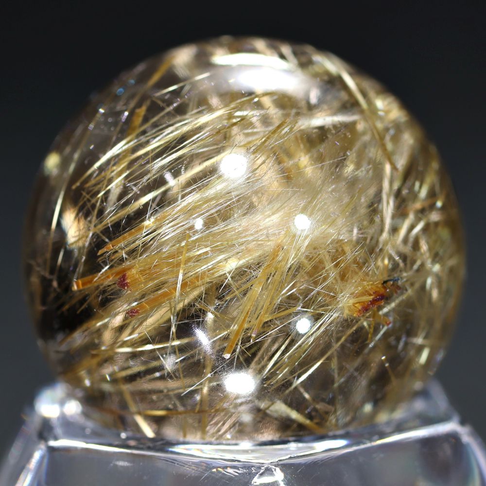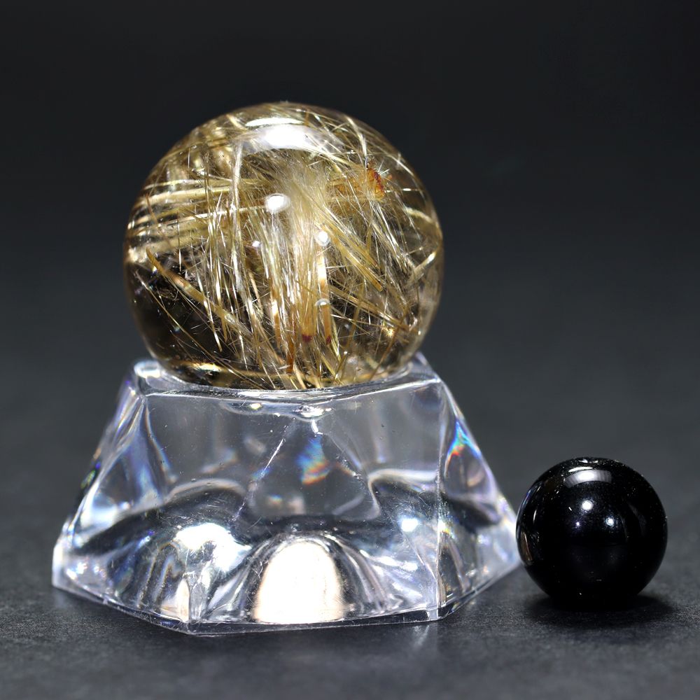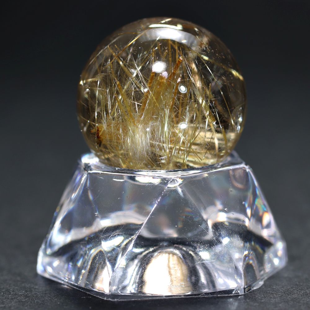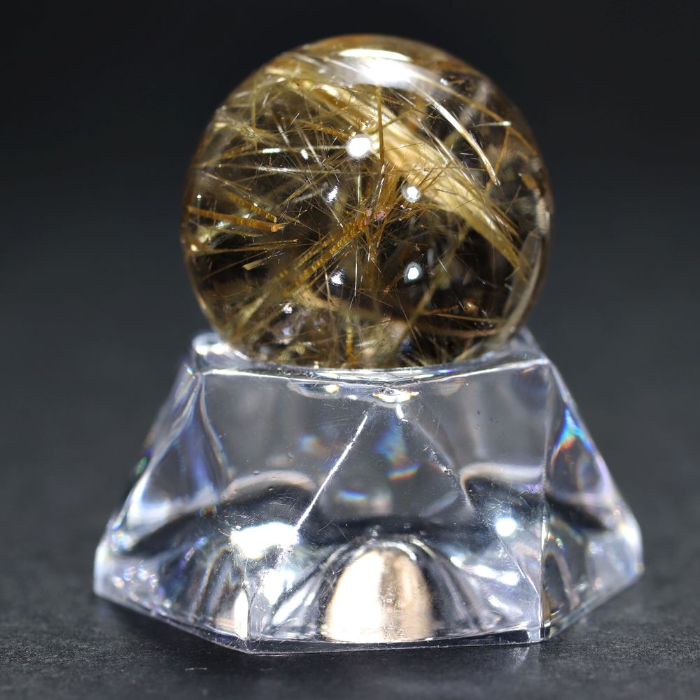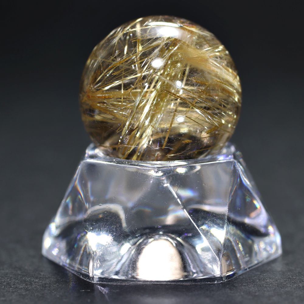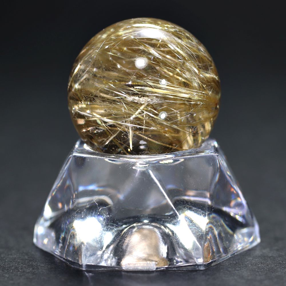 [高品質]ブラジル産タイチンルチルクォーツ丸玉/ミニスフィア(球体直径22.8mm)¥66,000クイックガイド送料