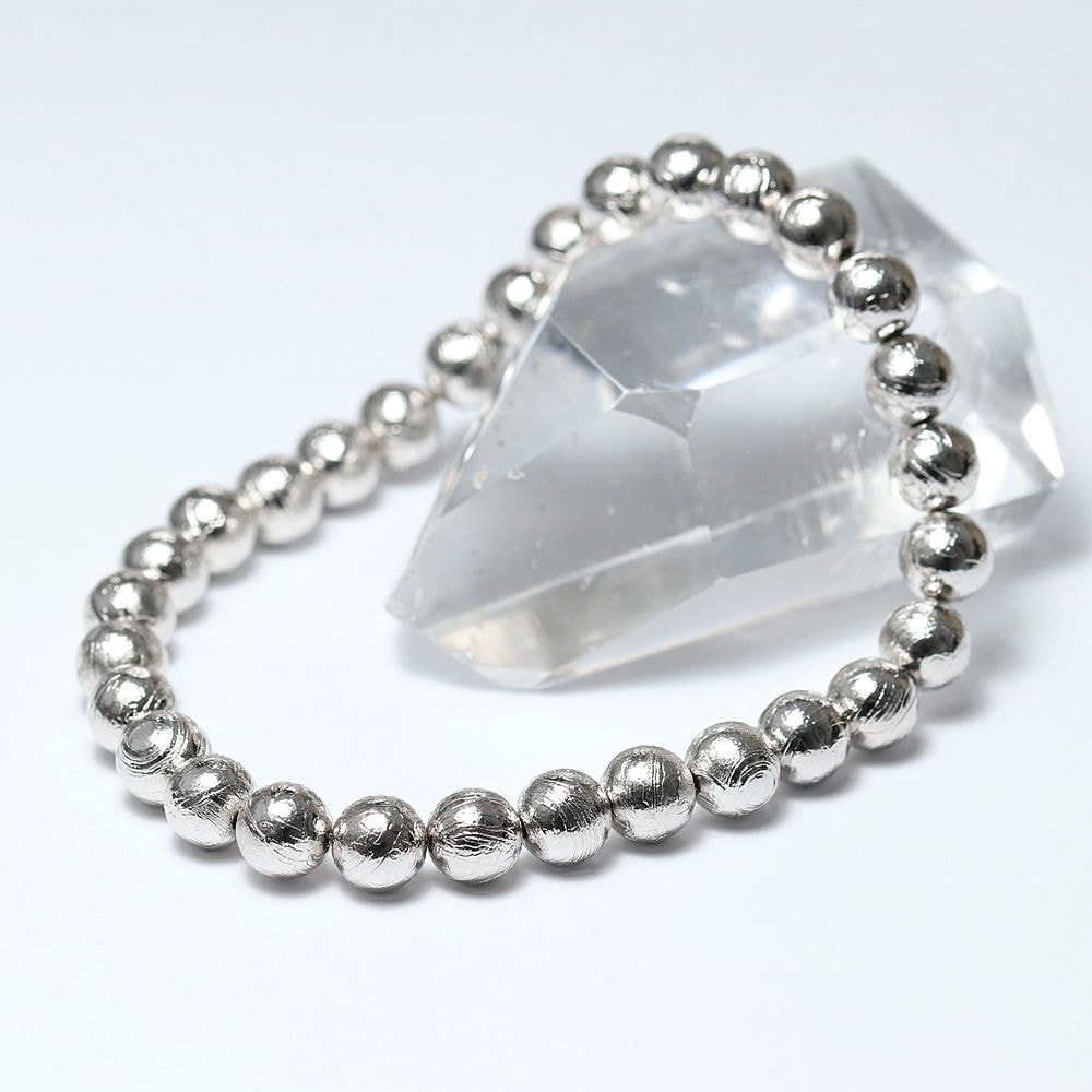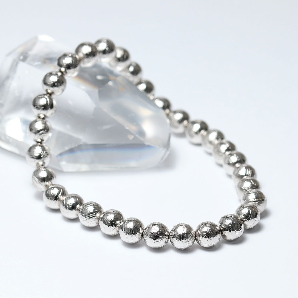 [ナミビア共和国産]ギベオン隕石ブレスレット(約6.5mm玉/シルバーカラー)