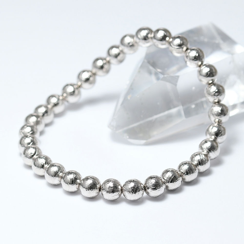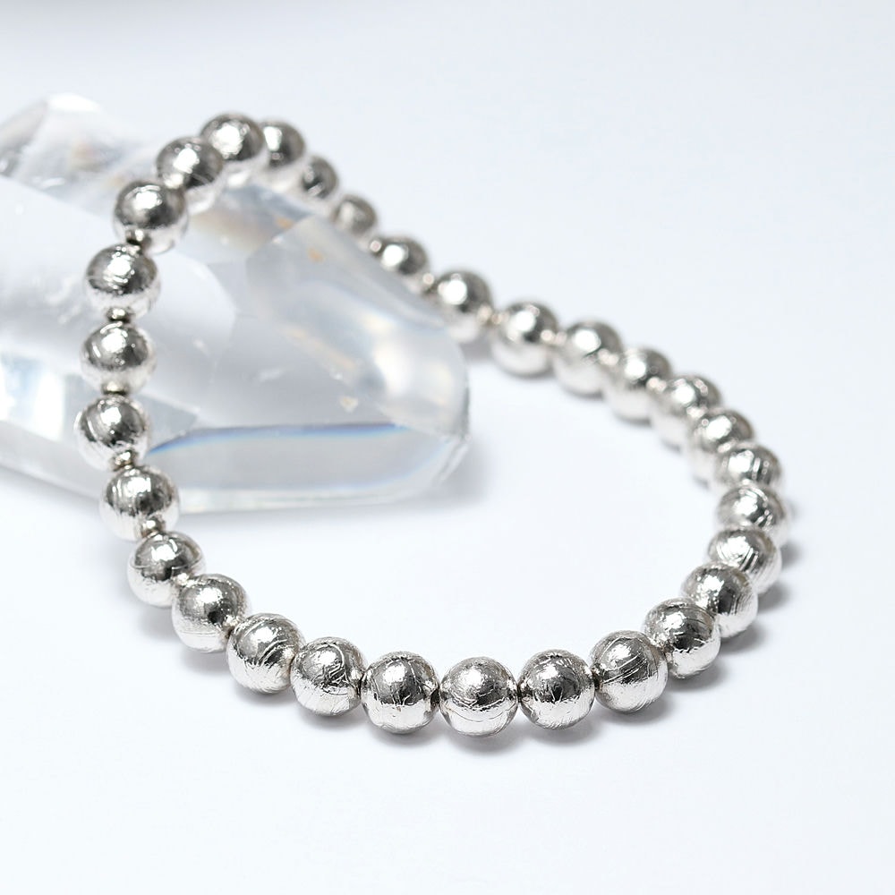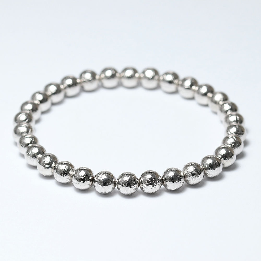 [ナミビア共和国産]ギベオン隕石ブレスレット(約6.5mm玉/シルバーカラー)