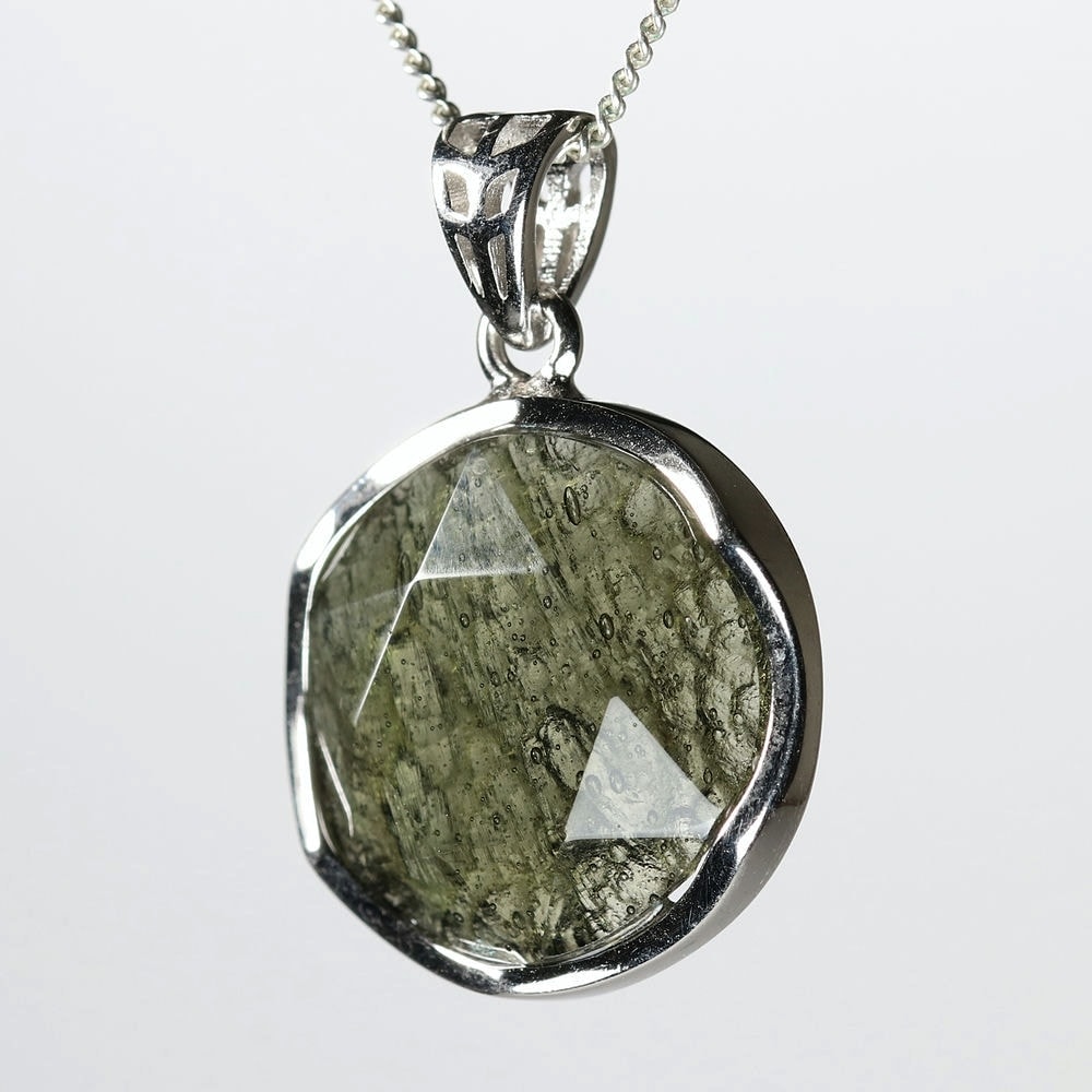 [チェコ共和国産]天然モルダバイトペンダントトップ/ヘキサゴンカット(シルバー925)