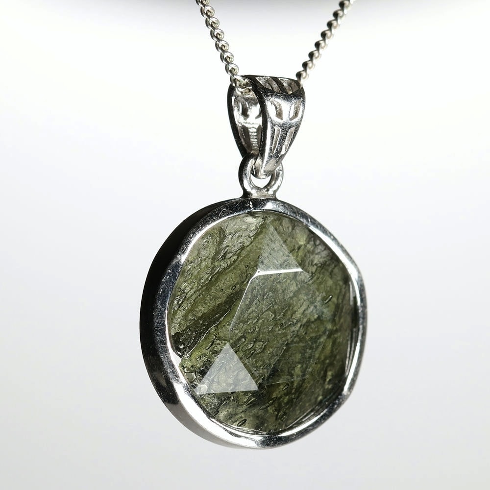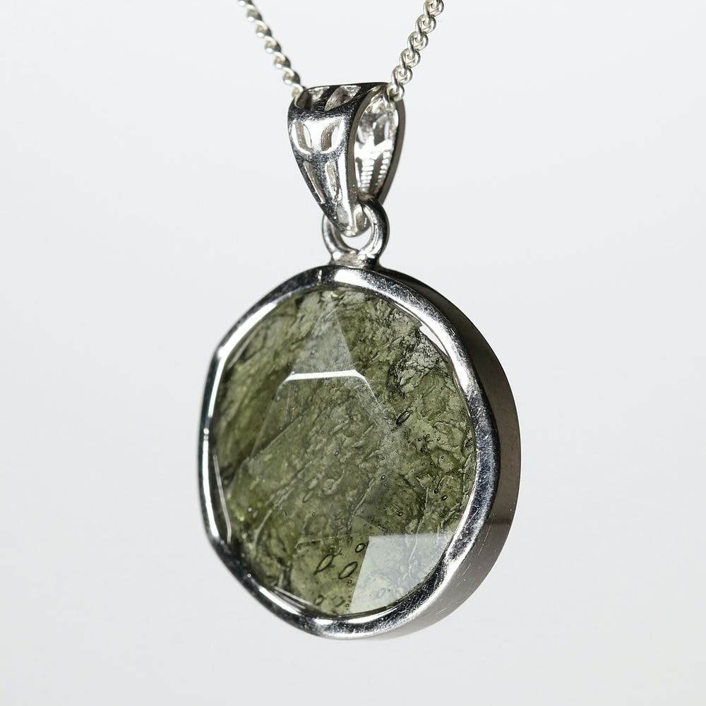 [チェコ共和国産]天然モルダバイトペンダントトップ/ヘキサゴンカット(シルバー925)¥24,000クイックガイド送料