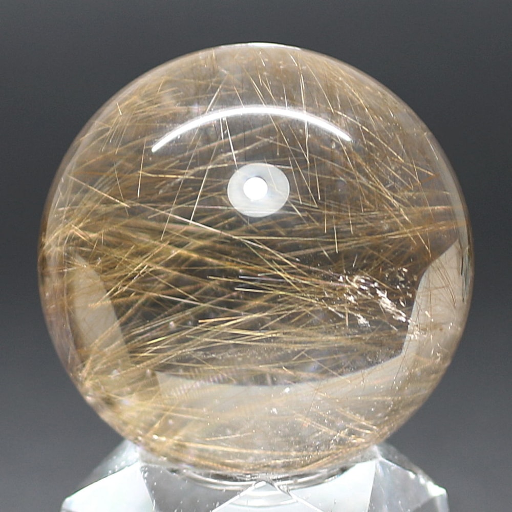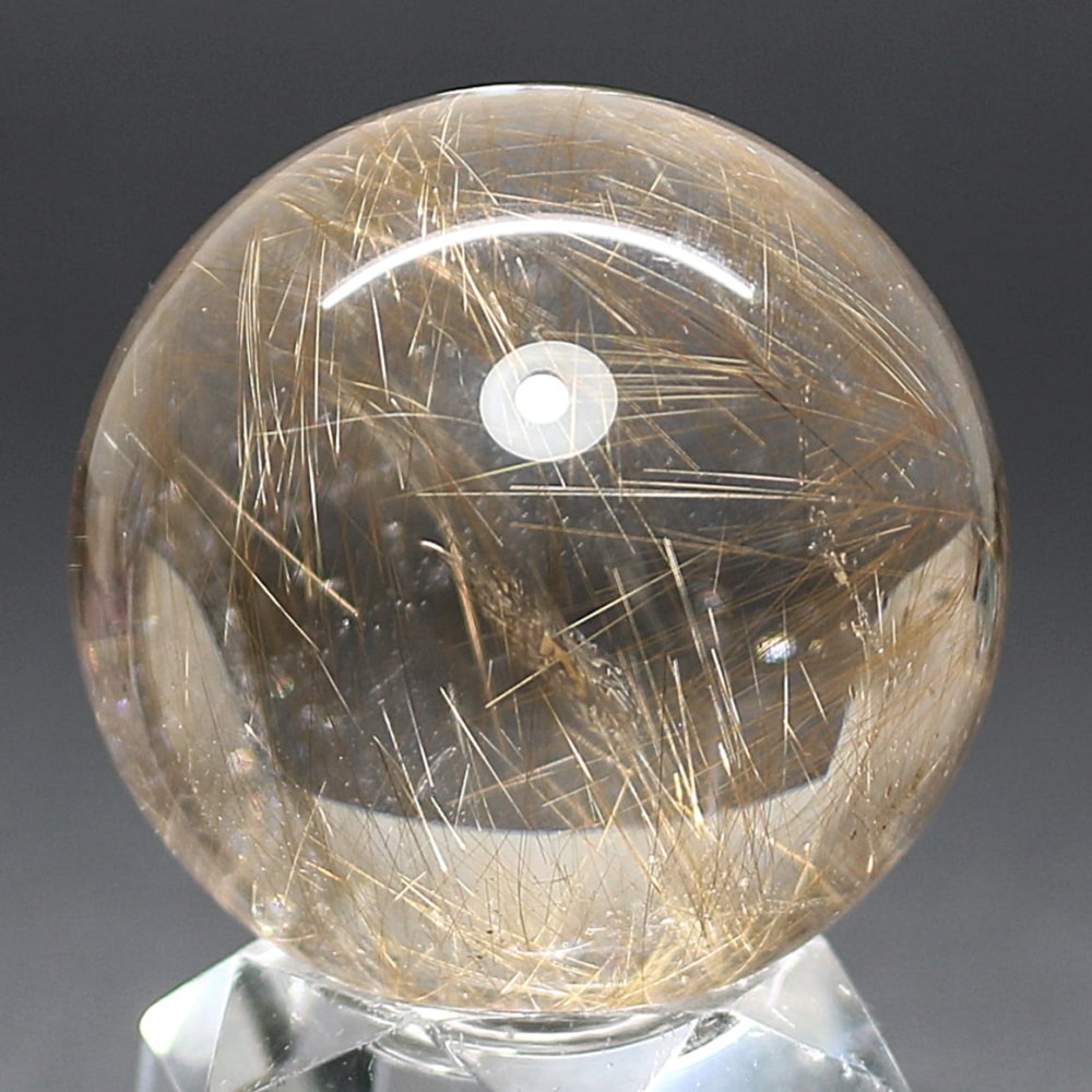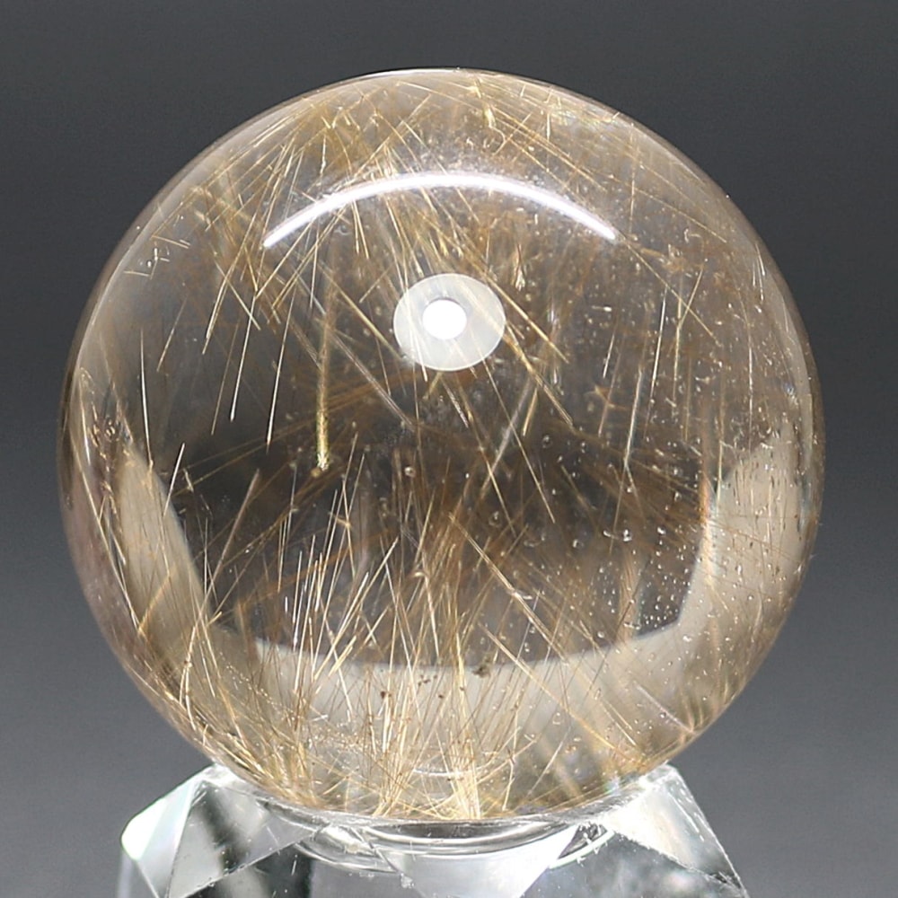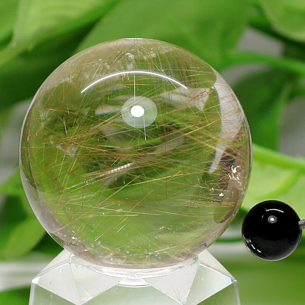 [高品質]インド/マニハール産ヒマラヤ水晶丸玉/ルチルクォーツスフィア(球体直径40.5mm・無数の小さな水入り?)¥184,600クイックガイド送料