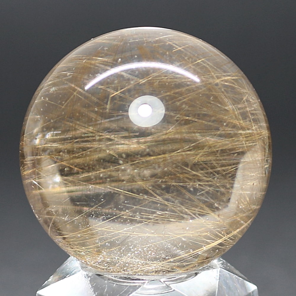 そんなマニハール産ヒマラヤ水晶の中で、透明度高い水晶にルチルクォーツ針状結晶がインクルージョンされた希少なスフィアをご用意しました。