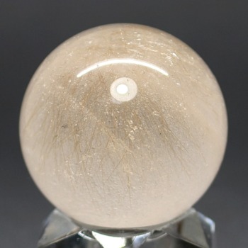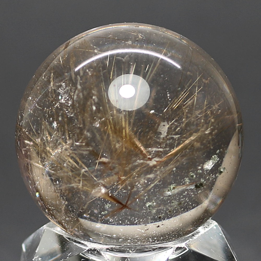 そんなマニハール産ヒマラヤ水晶の中で、透明度高い水晶にルチルクォーツ針状結晶がインクルージョンされた希少なスフィアをご用意しました。