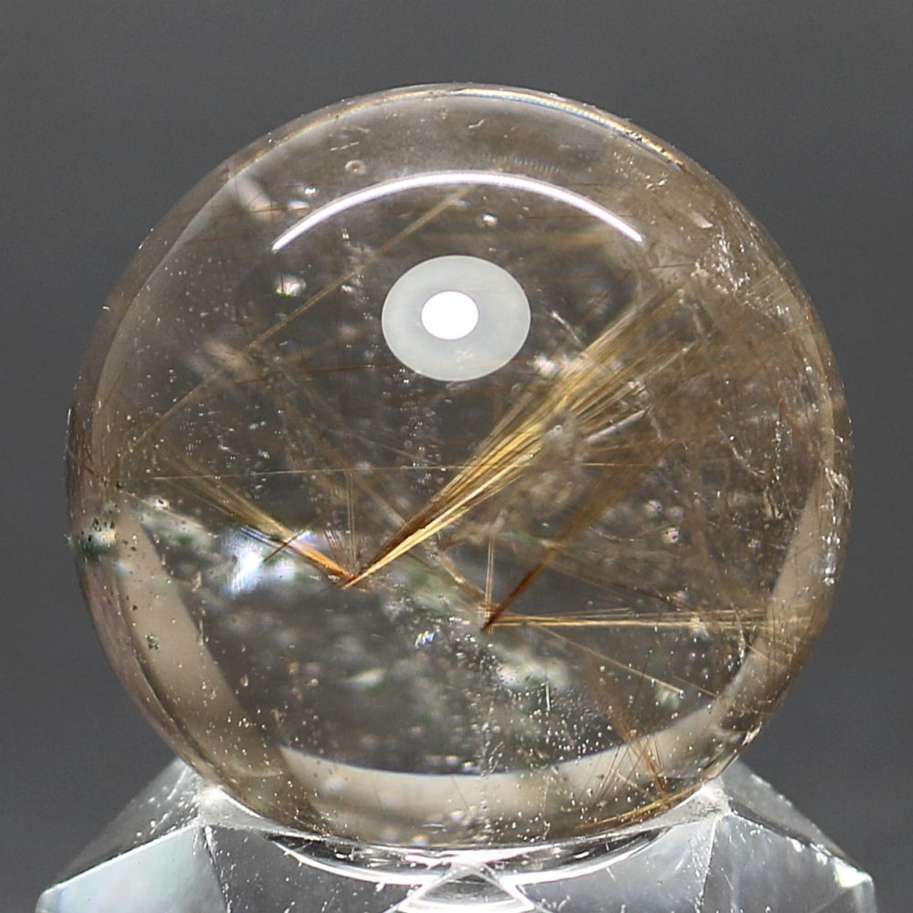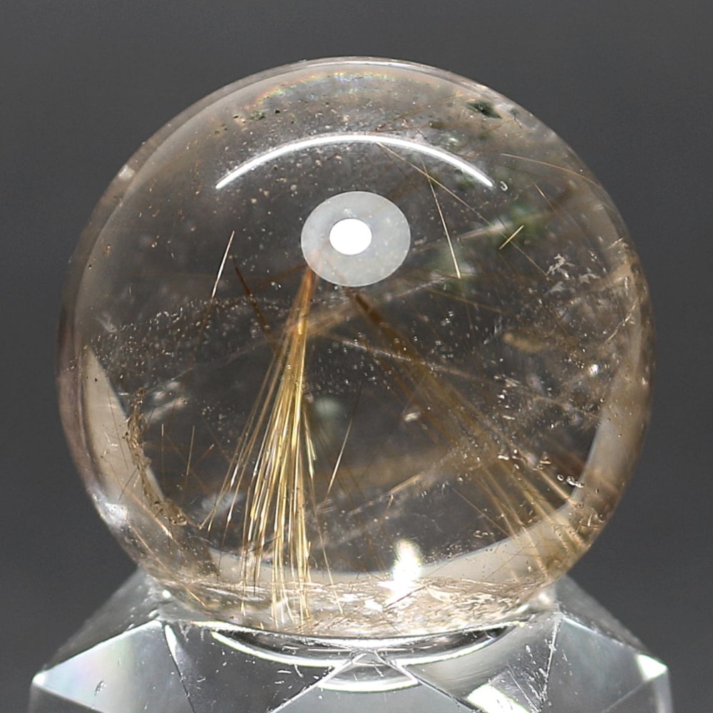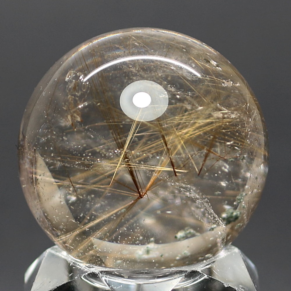[高品質]インド/マニハール産ヒマラヤ水晶丸玉/ルチルクォーツスフィア(球体直径33.5mm・無数の小さな水入り?)¥104,600クイックガイド送料