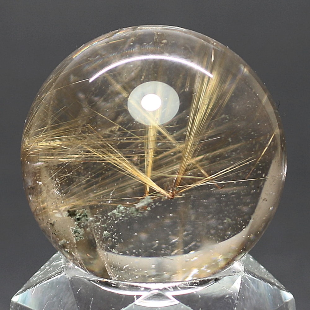 原石から作製!希少なルチル結晶入りマニハール産ヒマラヤ水晶スフィア