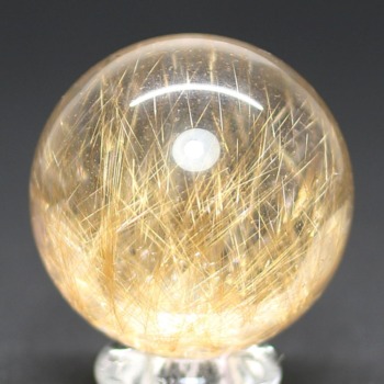 [高品質]インド/マニハール産ヒマラヤ水晶丸玉/ルチルクォーツスフィア(球体直径33.5mm・無数の小さな水入り?)