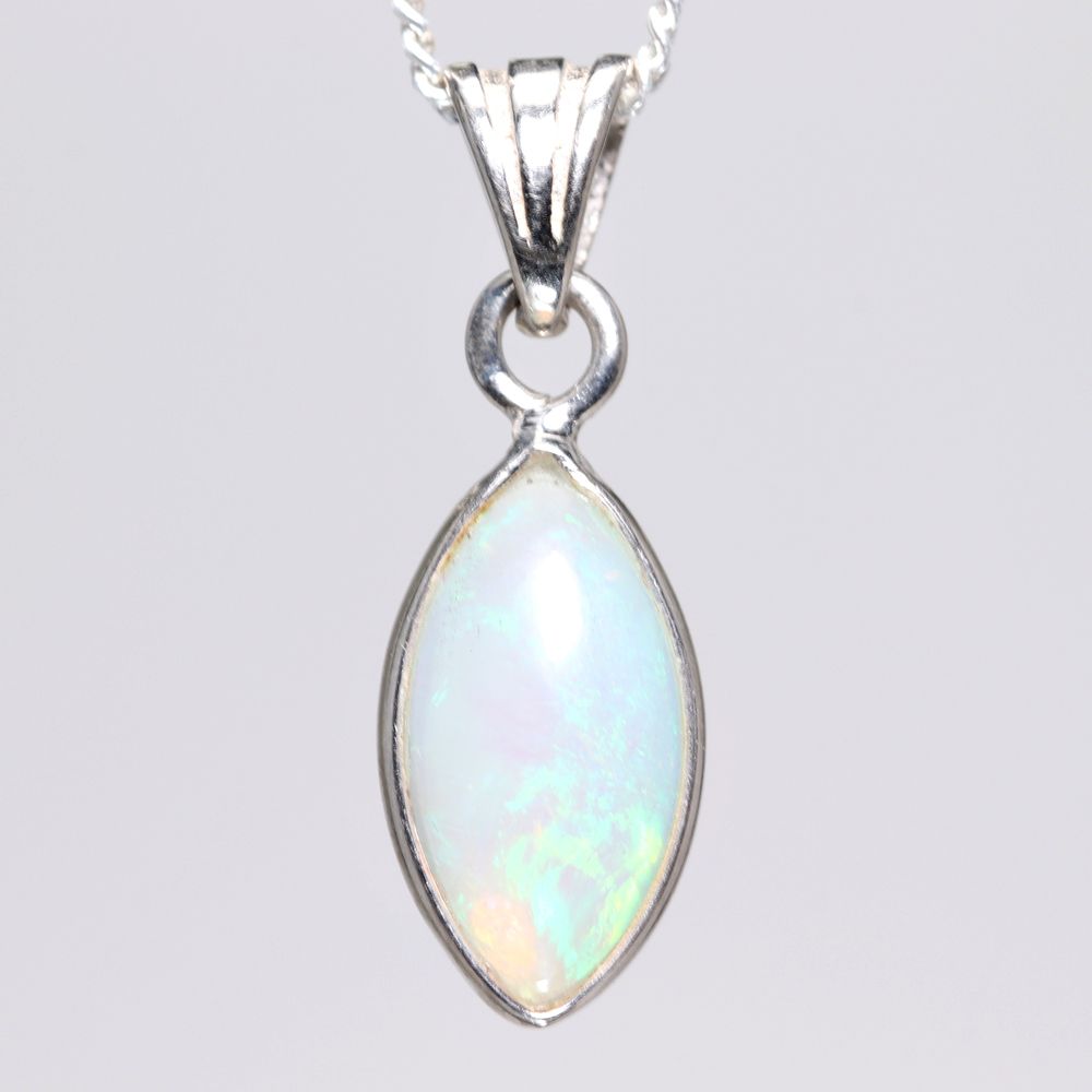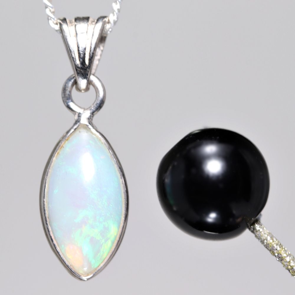 遊色効果が明瞭で色合いが鮮明なものほど高品質とされており、ご覧の天然エチオピアオパールも鮮やかな遊色効果がわかる良質なルースを選別してペンダント作製いたしました。