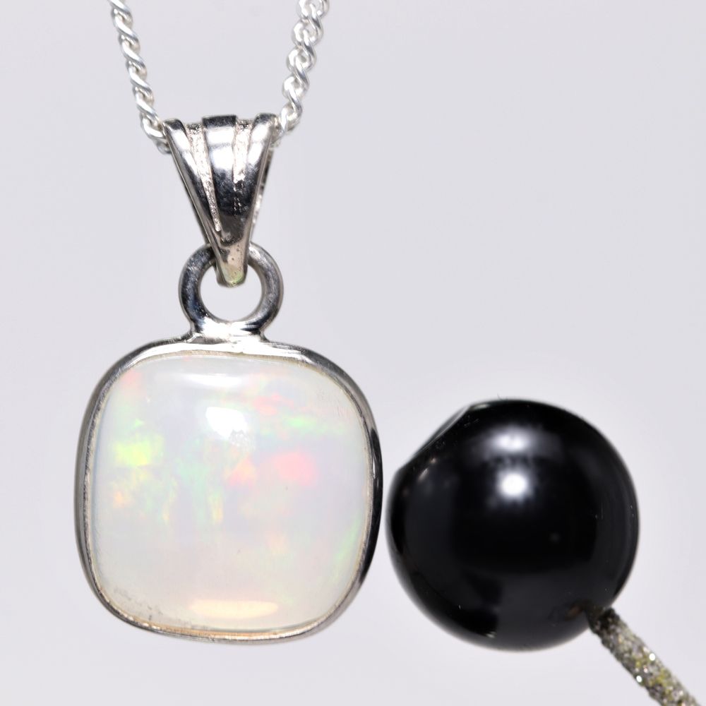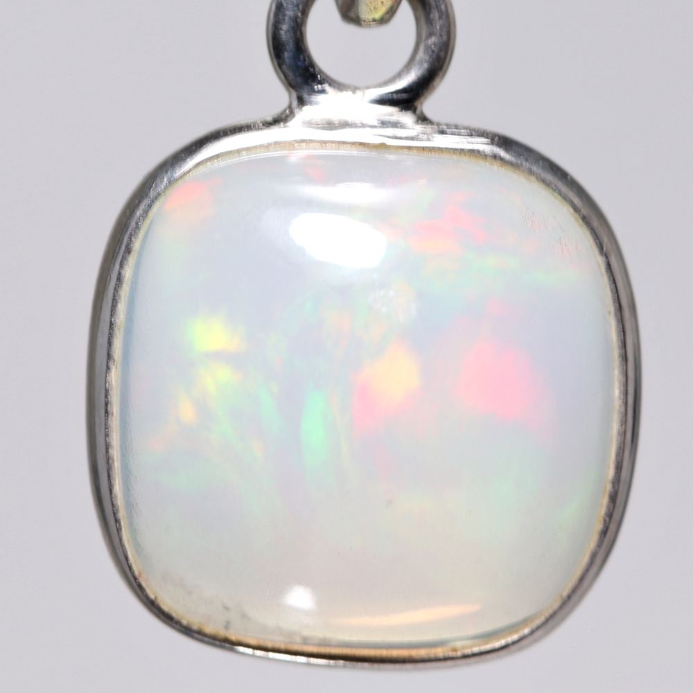 遊色効果が明瞭で色合いが鮮明なものほど高品質とされており、ご覧の天然エチオピアオパールも鮮やかな遊色効果がわかる良質なルースを選別してペンダント作製いたしました。