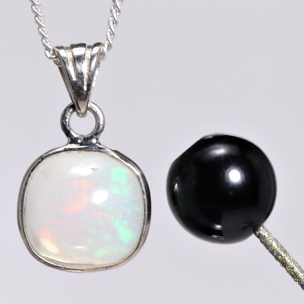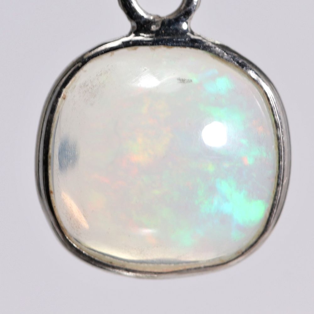 遊色効果が明瞭で色合いが鮮明なものほど高品質とされており、ご覧の天然エチオピアオパールも鮮やかな遊色効果がわかる良質なルースを選別してペンダント作製いたしました。