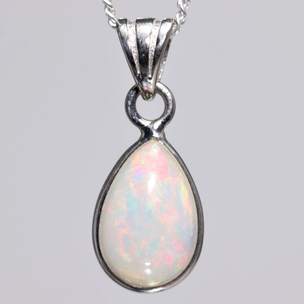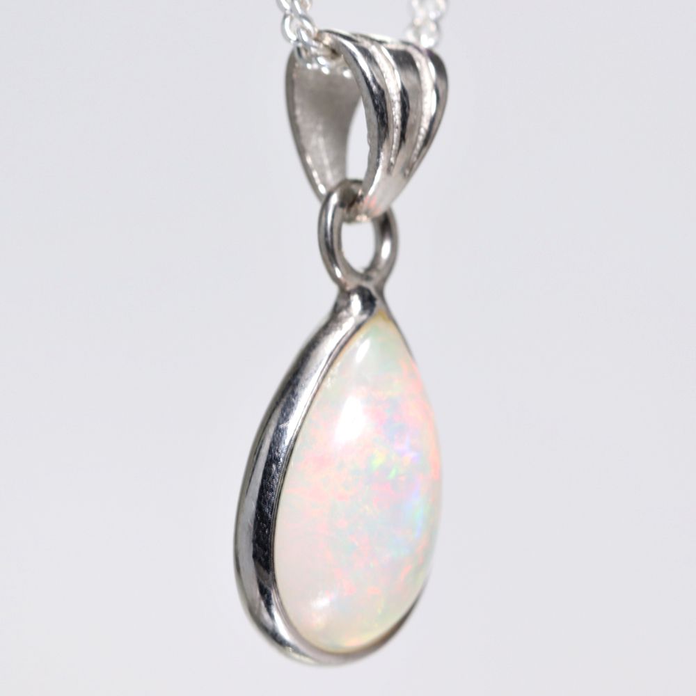 遊色効果が明瞭で色合いが鮮明なものほど高品質とされており、ご覧の天然エチオピアオパールも鮮やかな遊色効果がわかる良質なルースを選別してペンダント作製いたしました。