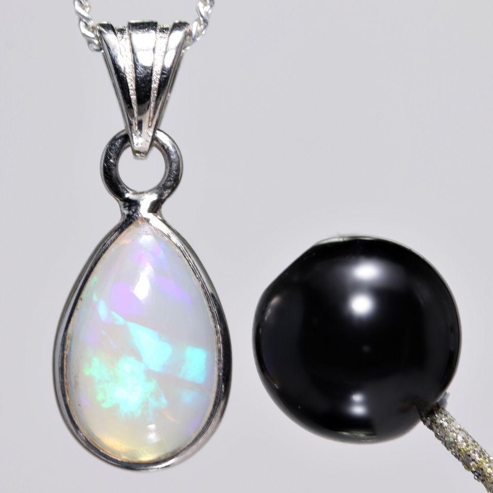 遊色効果が明瞭で色合いが鮮明なものほど高品質とされており、ご覧の天然エチオピアオパールも鮮やかな遊色効果がわかる良質なルースを選別してペンダント作製いたしました。