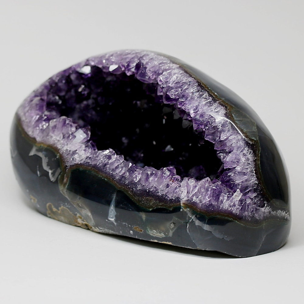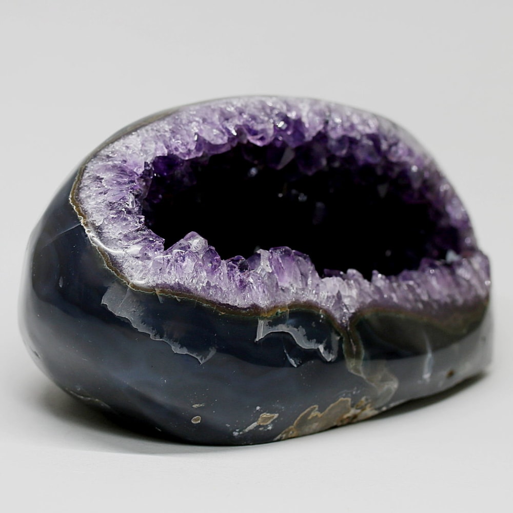 アメジストジオードとは、火山活動により形成された空洞内にアメジスト結晶が中心に向かって成長した、立体的な晶癖をお楽しみいただける天然石です。