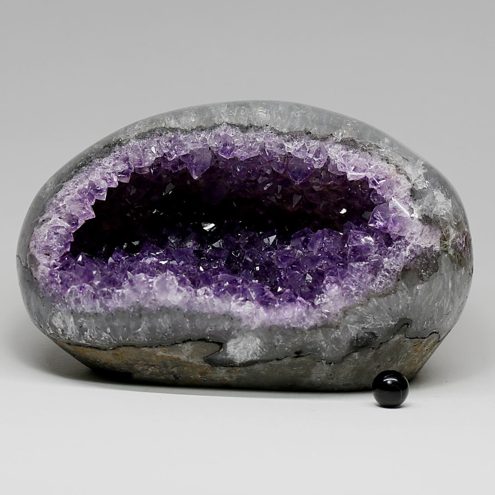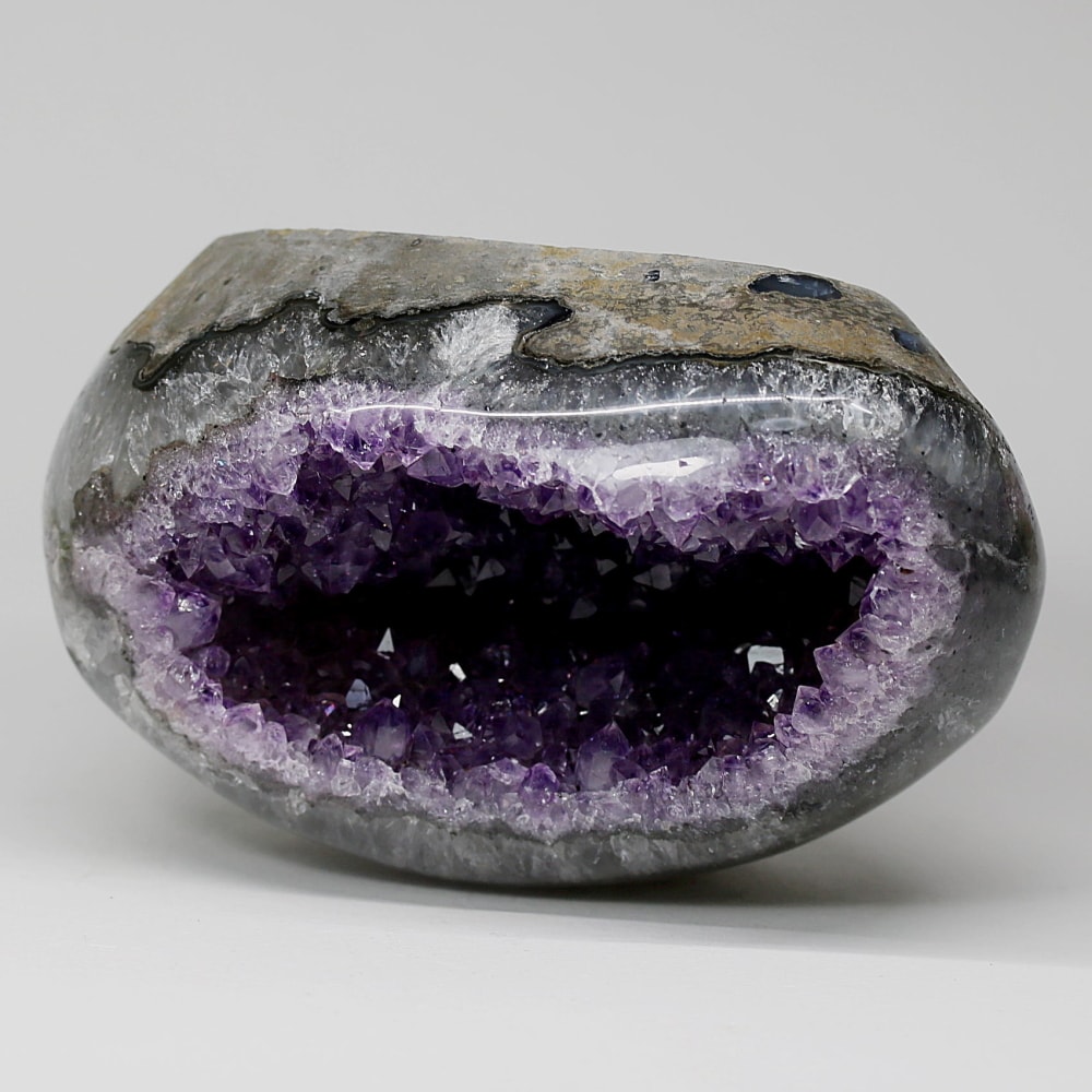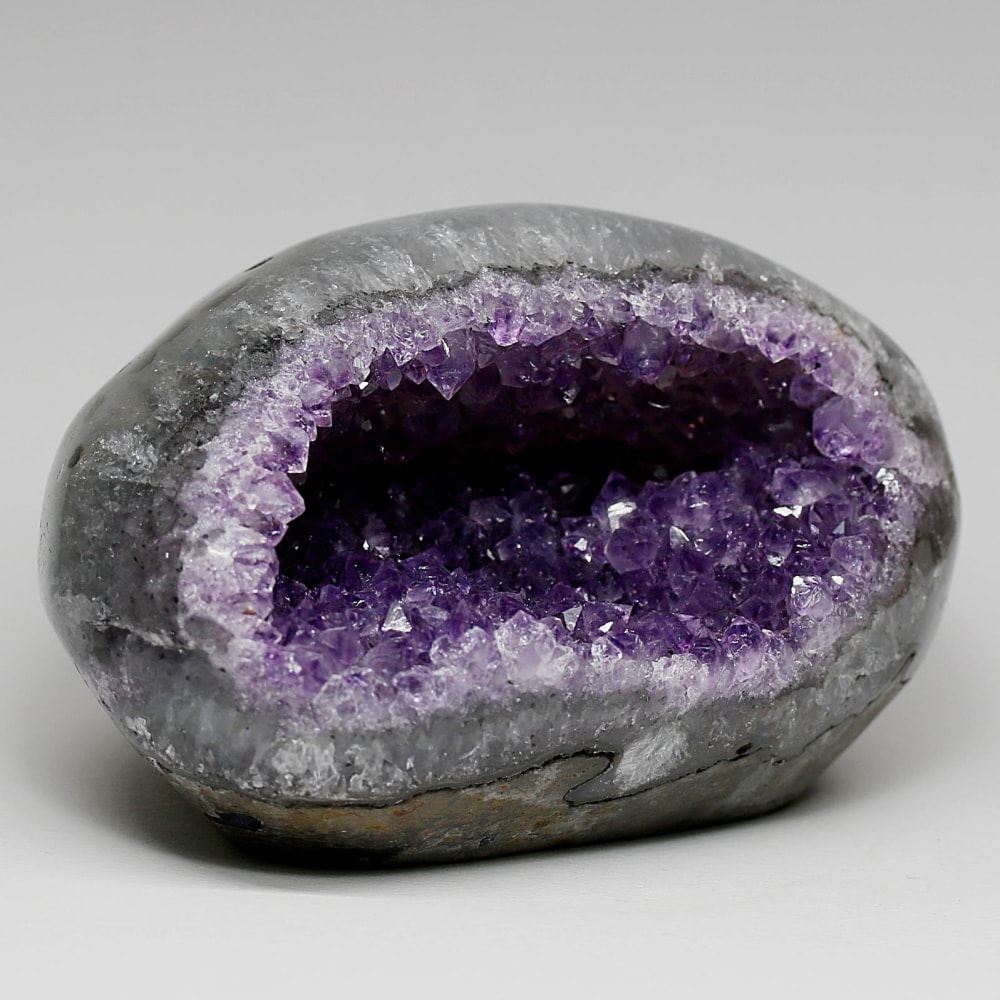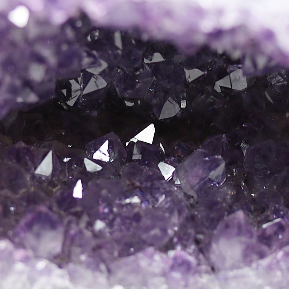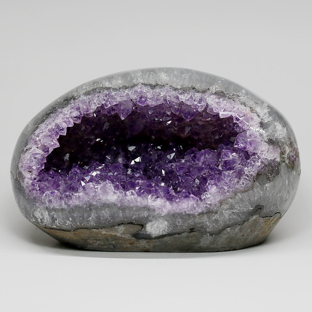 アメジストジオードとは、火山活動により形成された空洞内にアメジスト結晶が中心に向かって成長した、立体的な晶癖をお楽しみいただける天然石です。