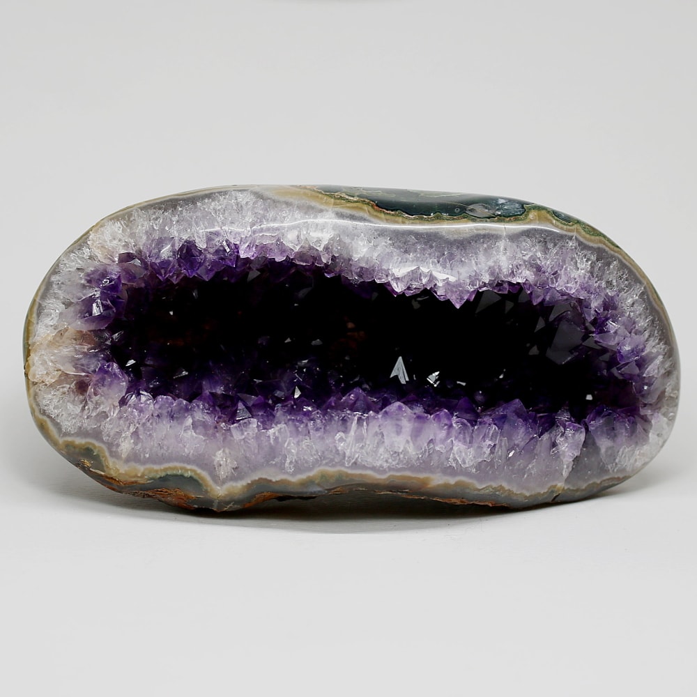 そんな中でご用意した、こちらの【トップ品質】は、発色・形状・照り艶すべて揃った素晴らしい品質です。欠損や白濁がほぼ見られず、内部アメジスト結晶は大きく深みのある色合いを備えています。