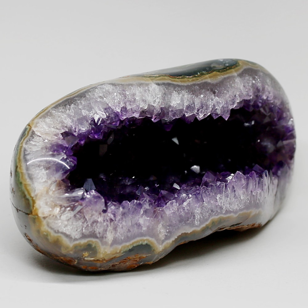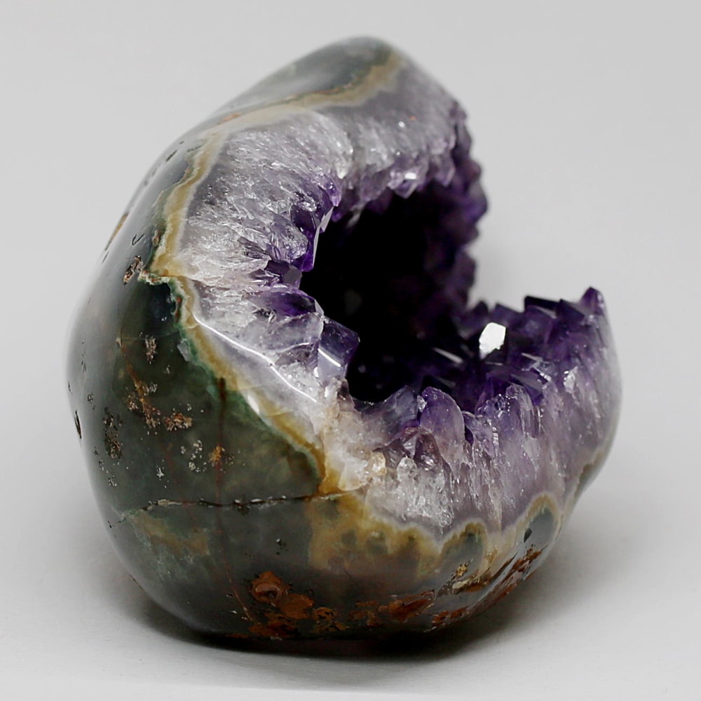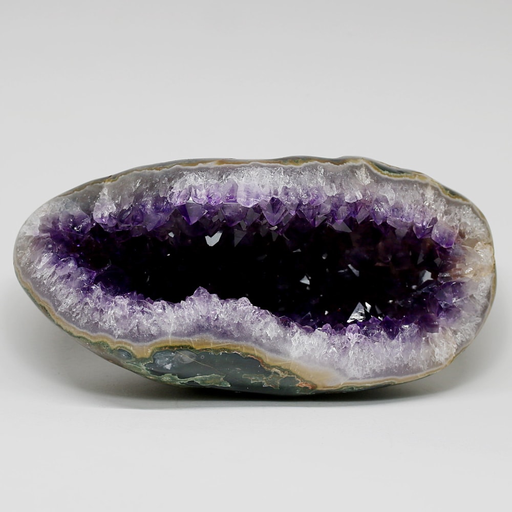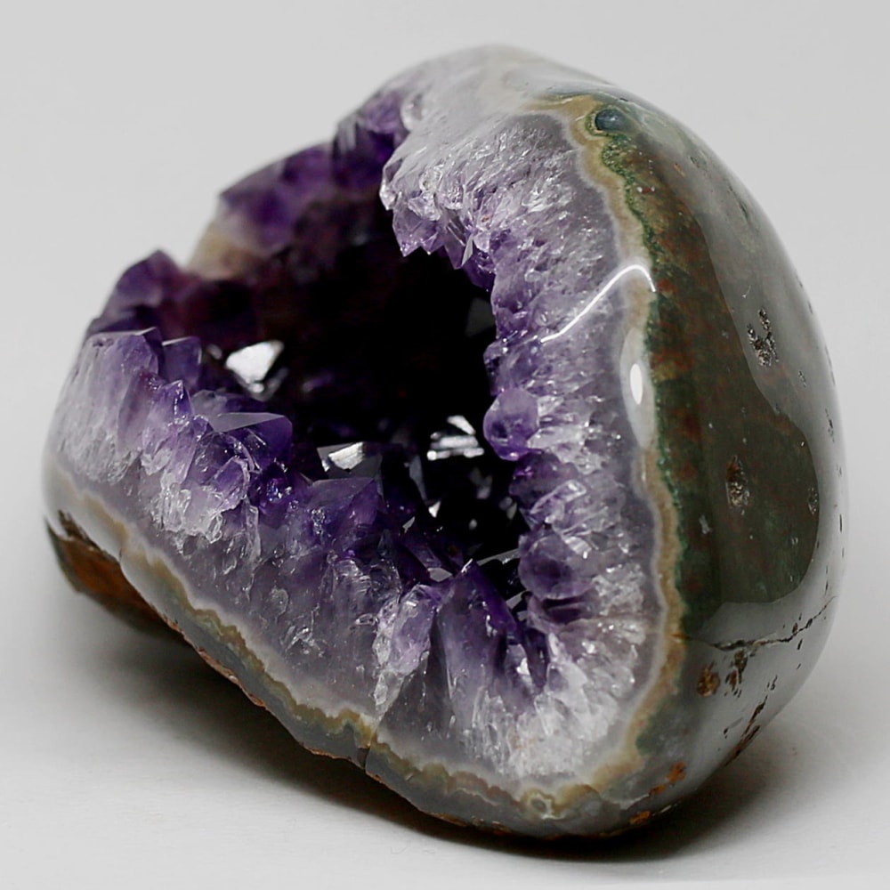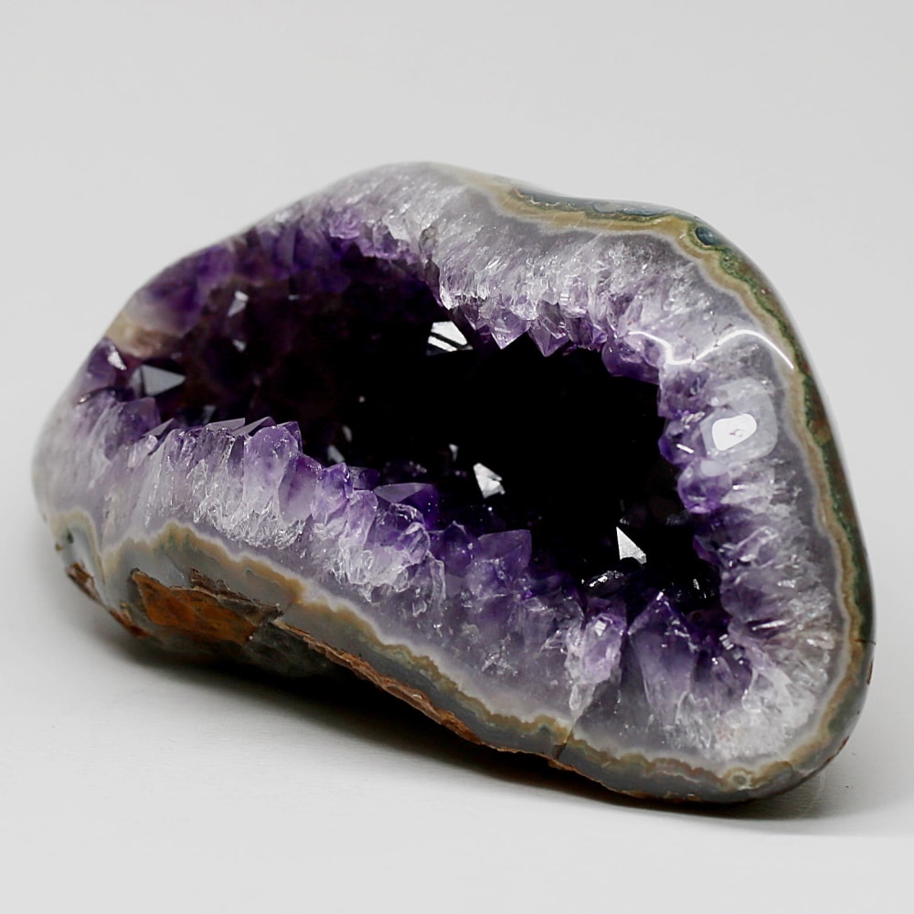 アメジストジオードとは、火山活動により形成された空洞内にアメジスト結晶が中心に向かって成長した、立体的な晶癖をお楽しみいただける天然石です。