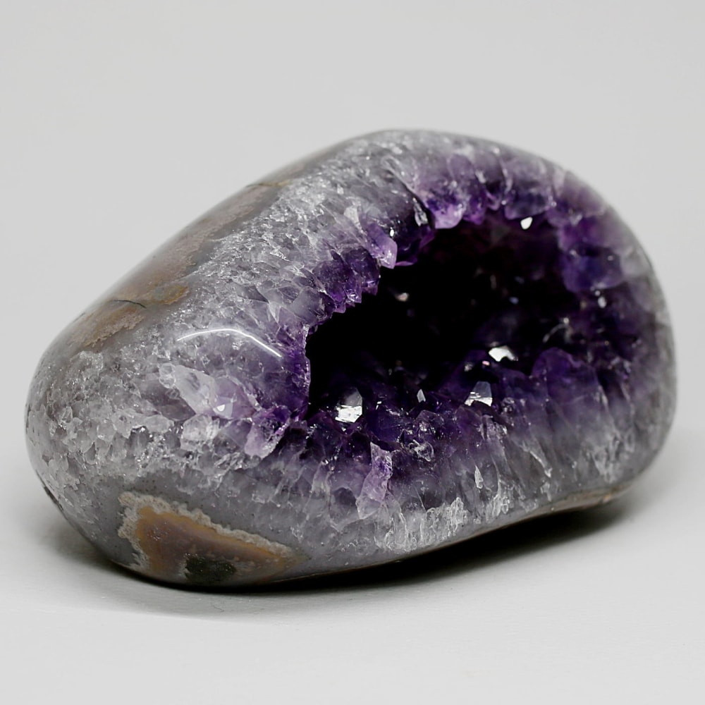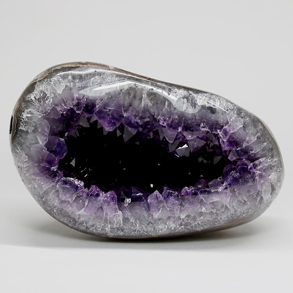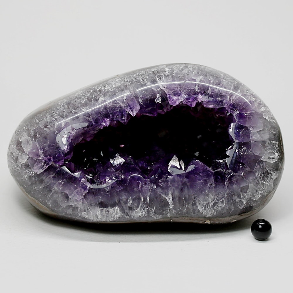 そんな中でご用意した、こちらの【トップ品質】は、発色・形状・照り艶すべて揃った素晴らしい品質です。欠損や白濁がほぼ見られず、内部アメジスト結晶は大きく深みのある色合いを備えています。