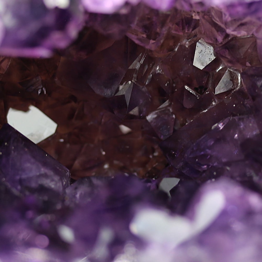 アメジストジオードとは、火山活動により形成された空洞内にアメジスト結晶が中心に向かって成長した、立体的な晶癖をお楽しみいただける天然石です。
