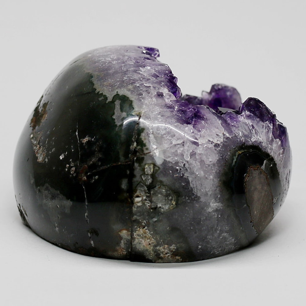 そんな中でご用意した、こちらの【トップ品質】は、発色・形状・照り艶すべて揃った素晴らしい品質です。欠損や白濁がほぼ見られず、内部アメジスト結晶は大きく深みのある色合いを備えています。