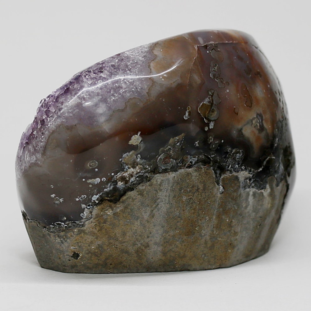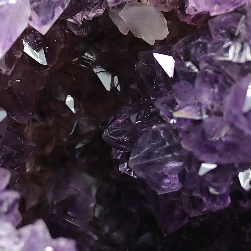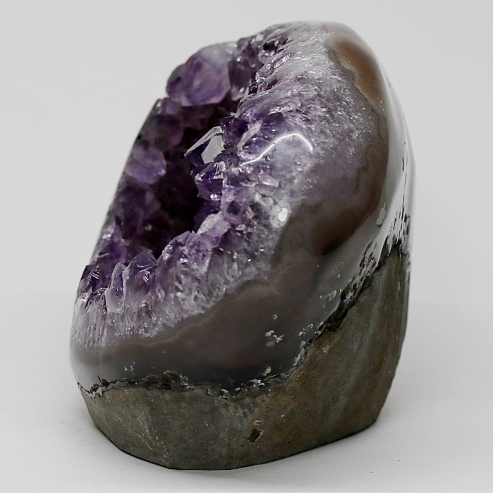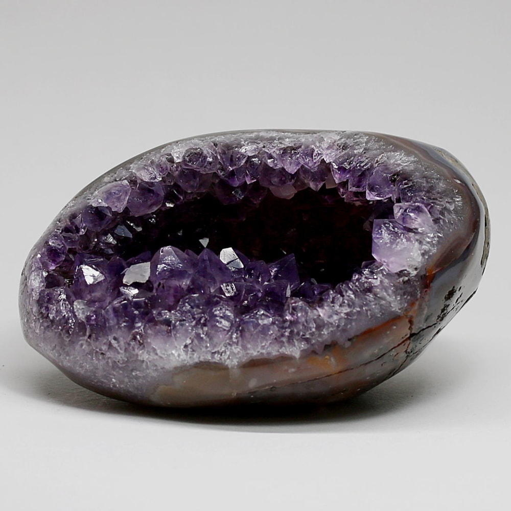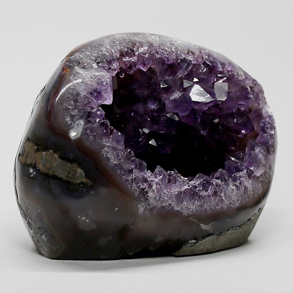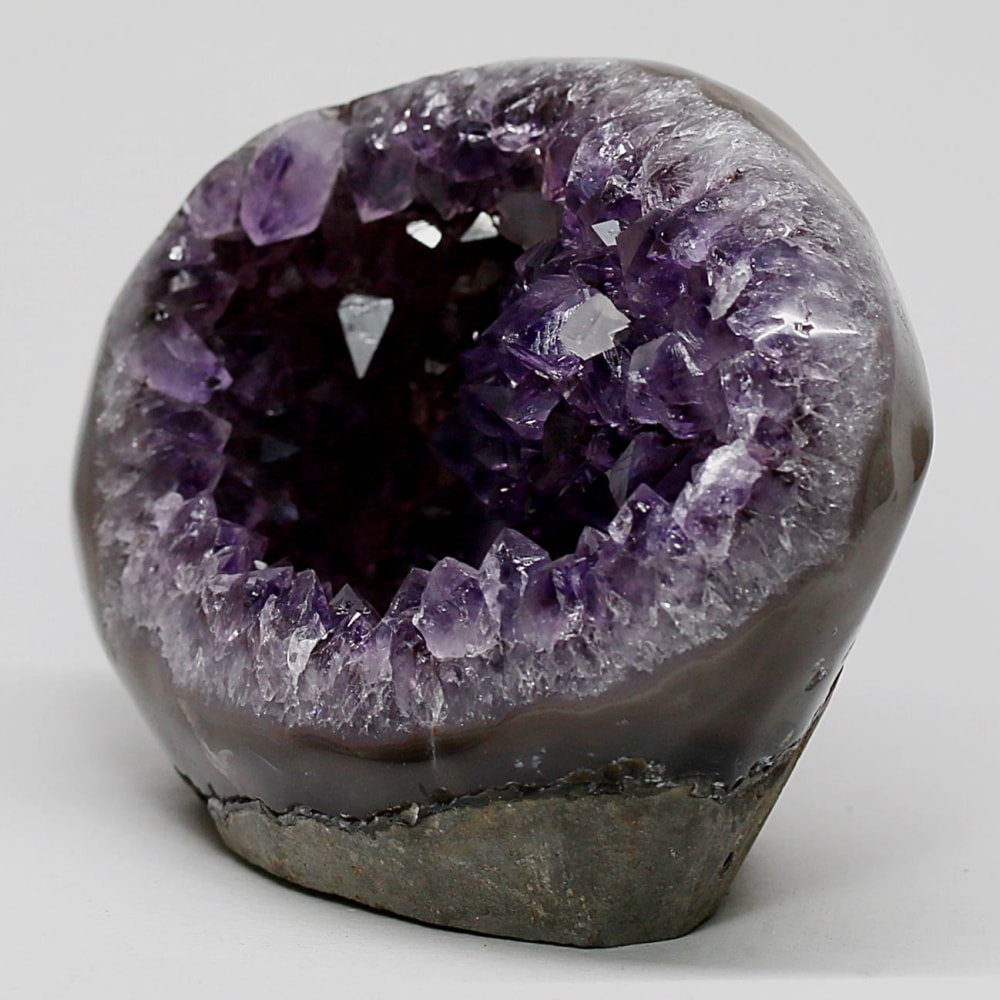 アメジストジオードとは、火山活動により形成された空洞内にアメジスト結晶が中心に向かって成長した、立体的な晶癖をお楽しみいただける天然石です。
