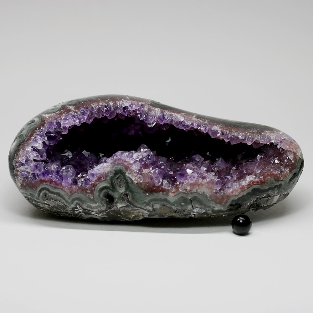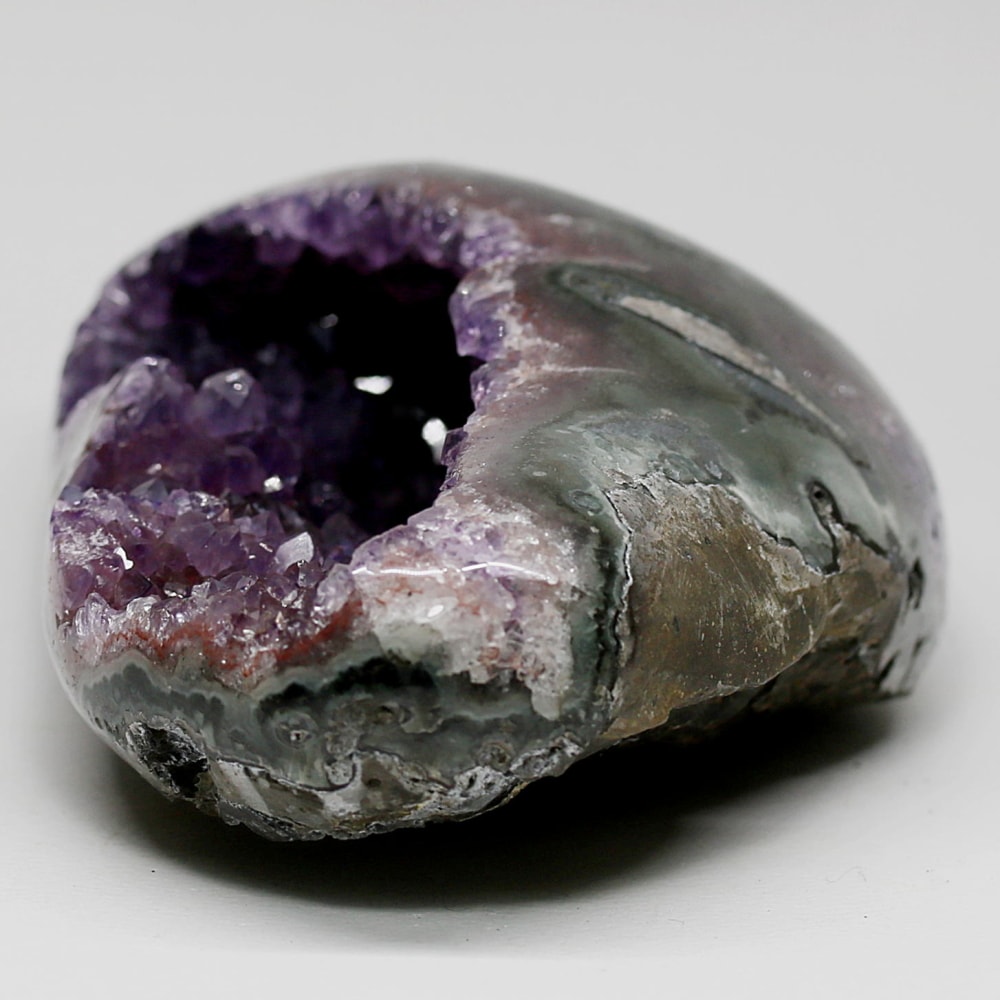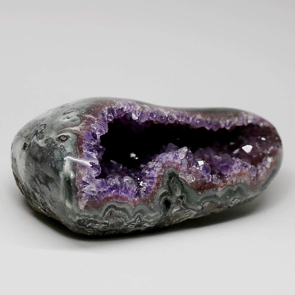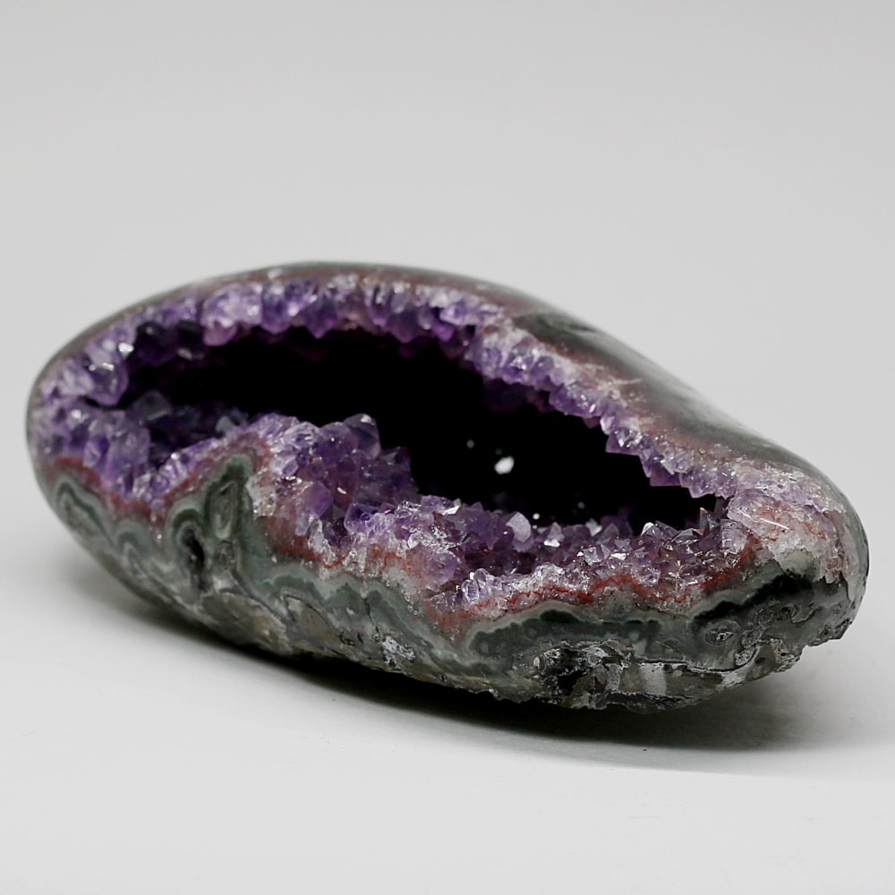 アメジストジオードとは、火山活動により形成された空洞内にアメジスト結晶が中心に向かって成長した、立体的な晶癖をお楽しみいただける天然石です。