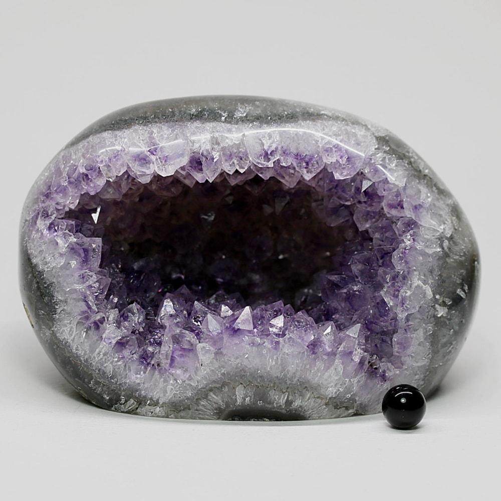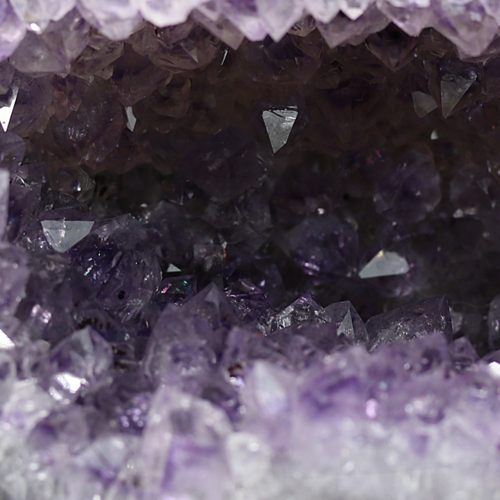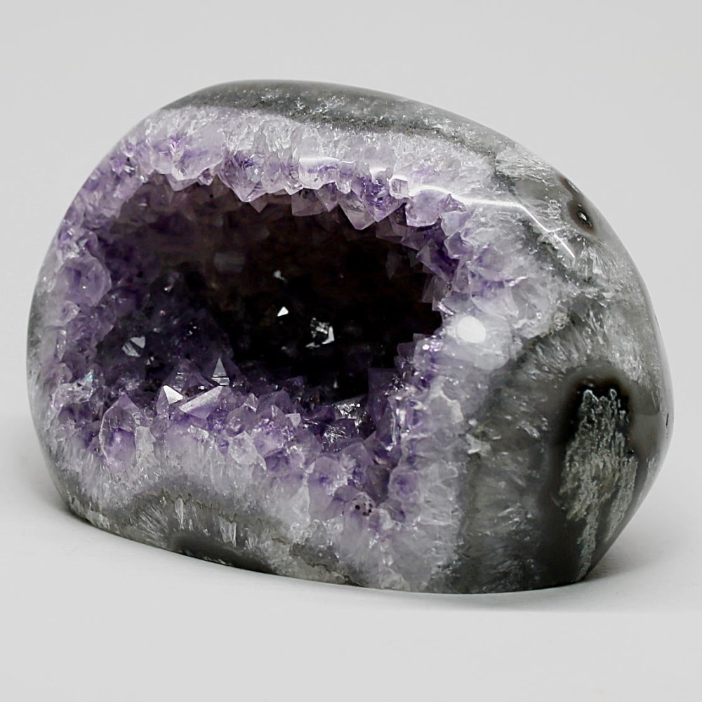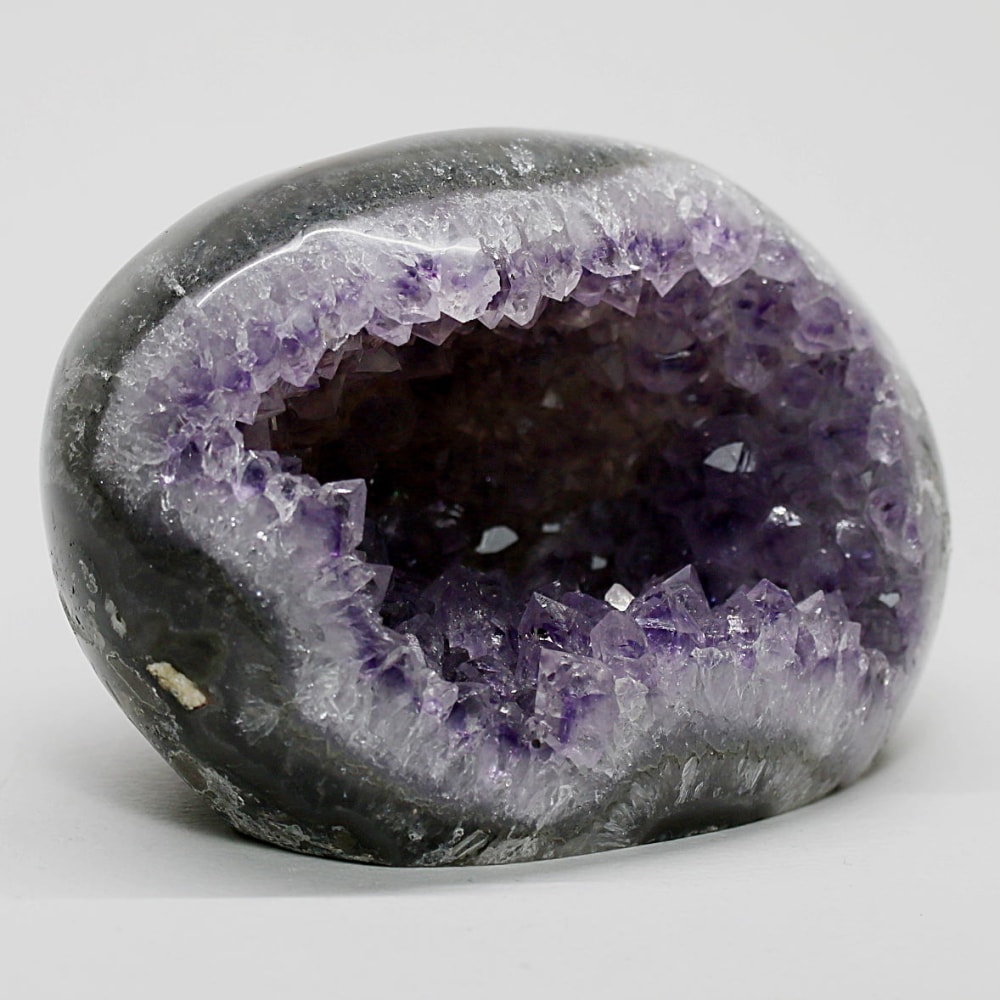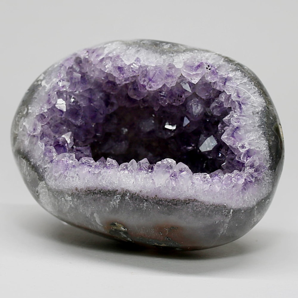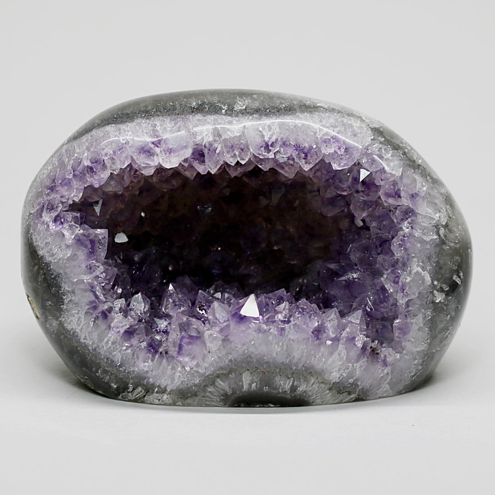 アメジストジオードとは、火山活動により形成された空洞内にアメジスト結晶が中心に向かって成長した、立体的な晶癖をお楽しみいただける天然石です。