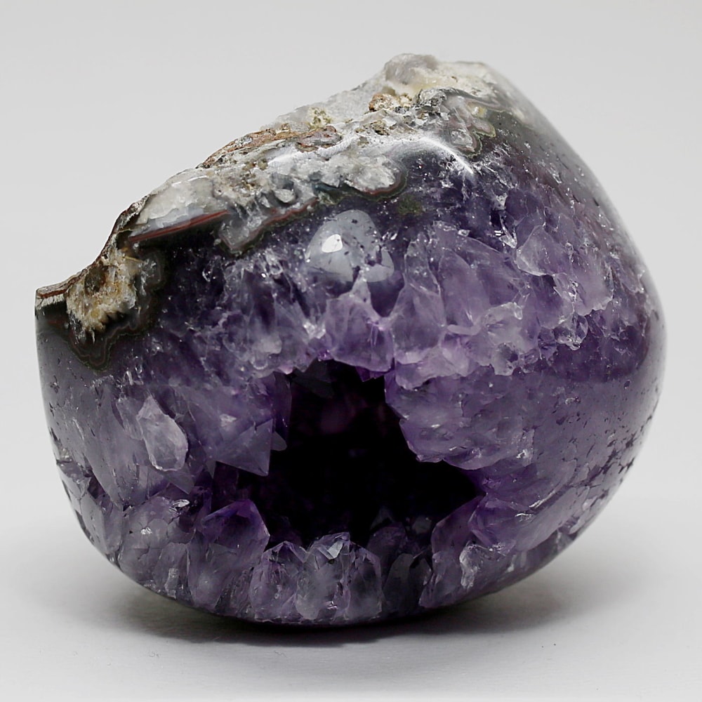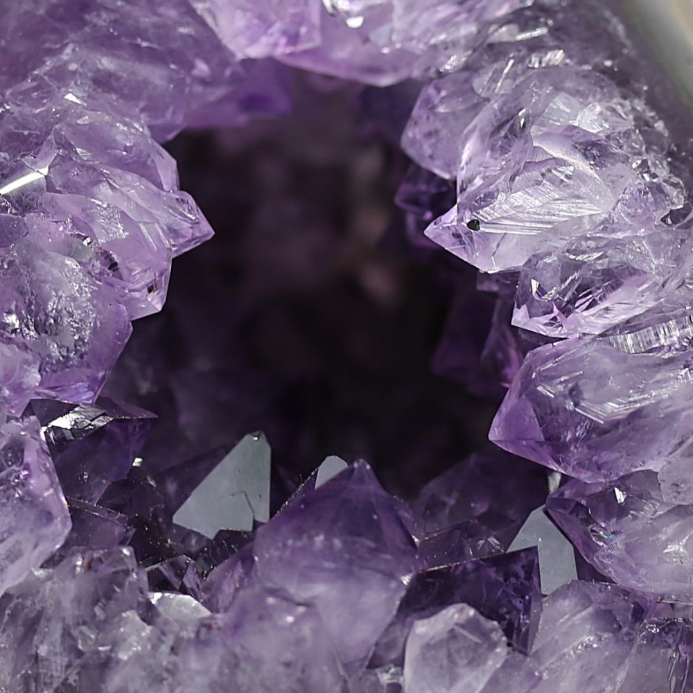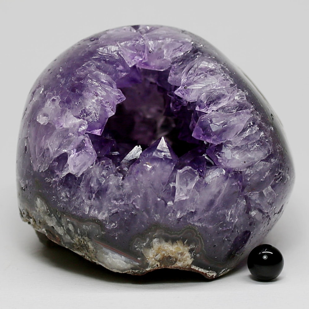 アメジストジオードとは、火山活動により形成された空洞内にアメジスト結晶が中心に向かって成長した、立体的な晶癖をお楽しみいただける天然石です。