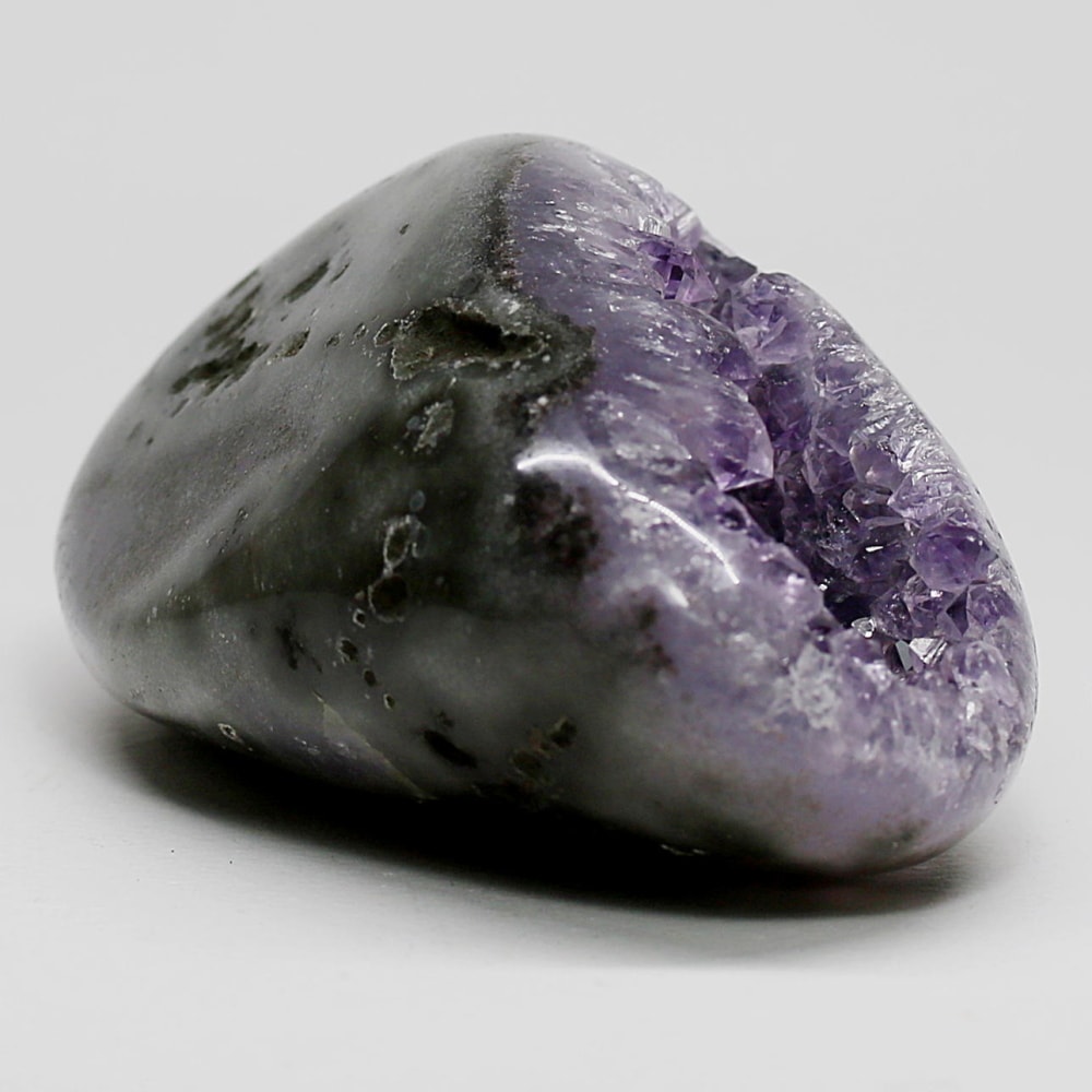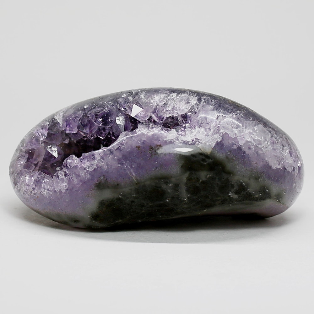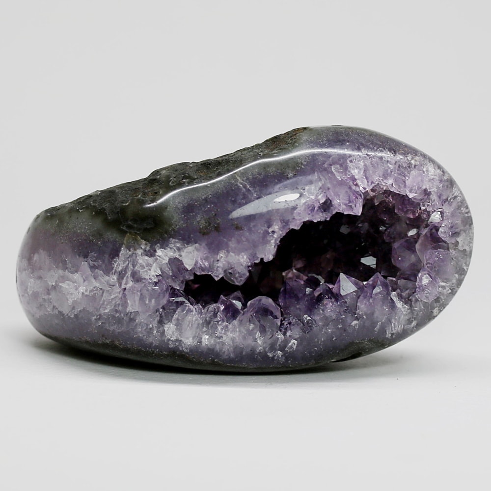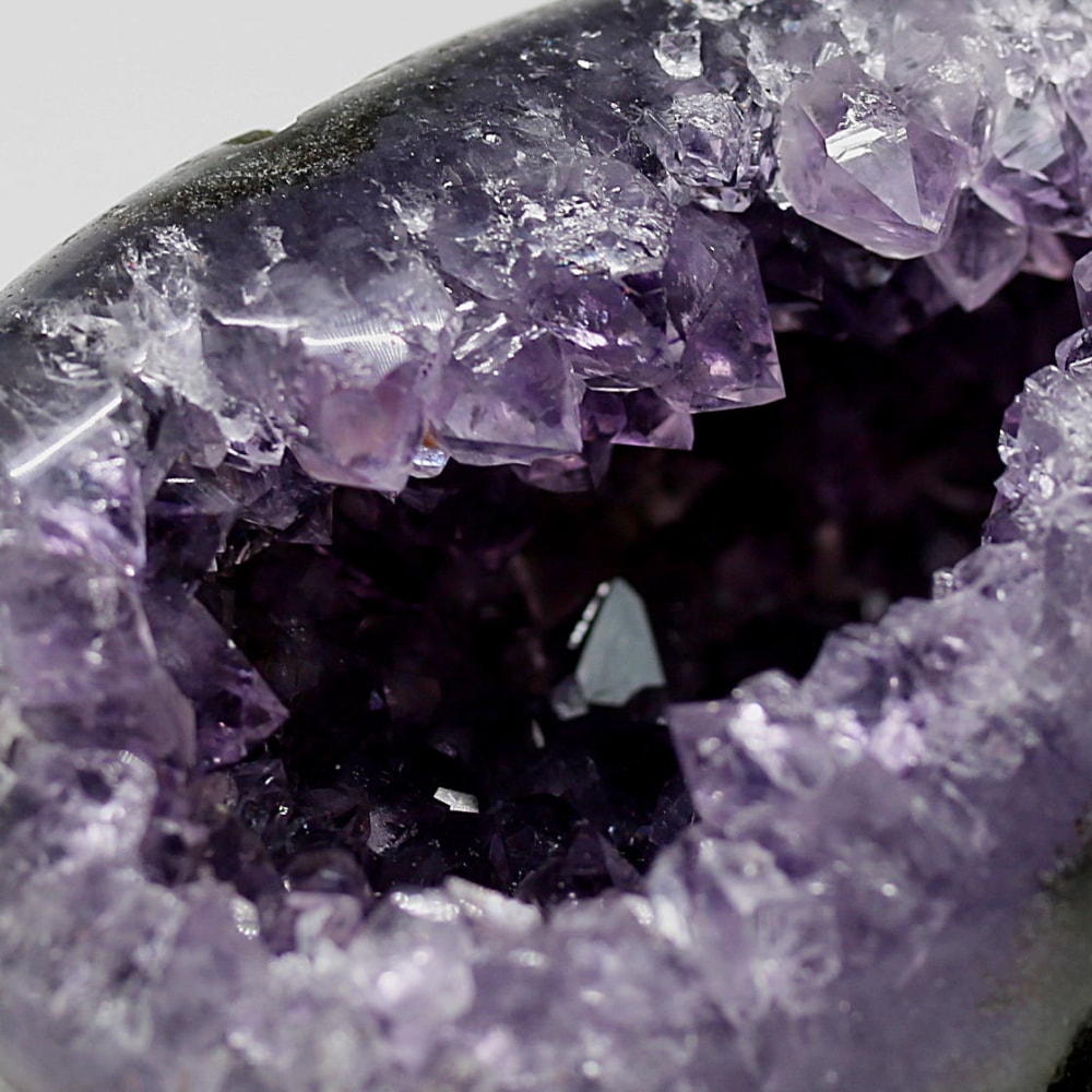 アメジストジオードとは、火山活動により形成された空洞内にアメジスト結晶が中心に向かって成長した、立体的な晶癖をお楽しみいただける天然石です。