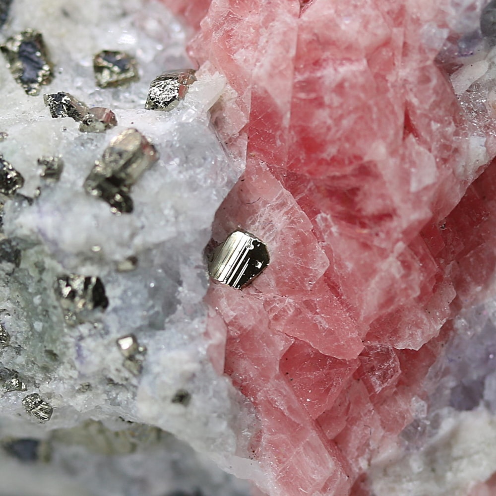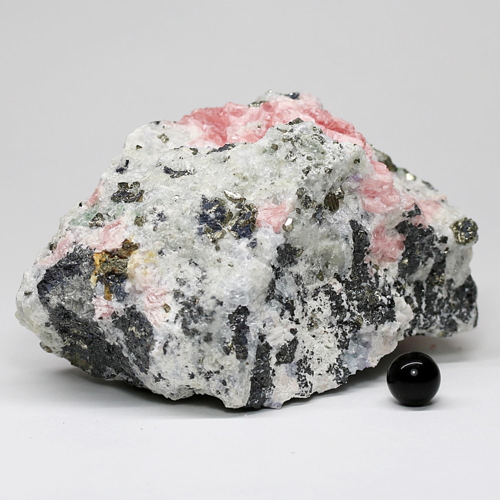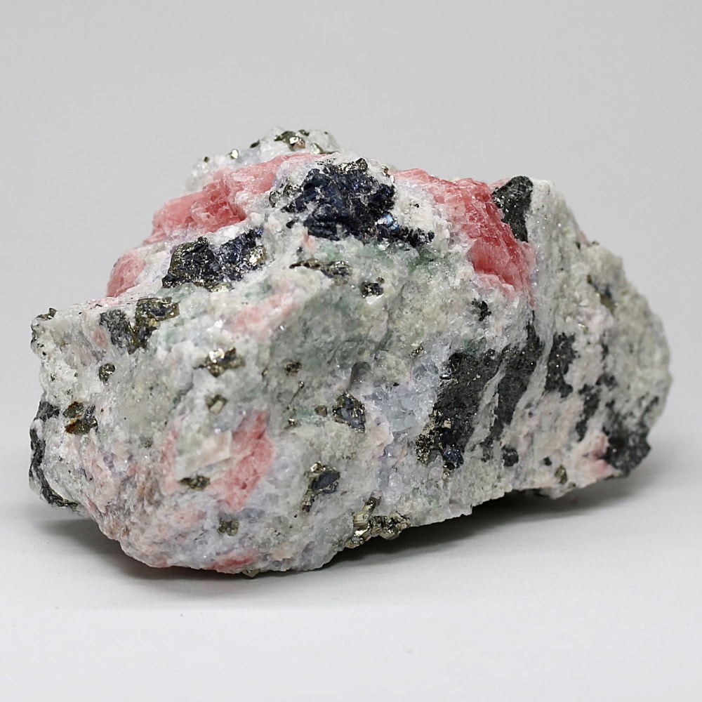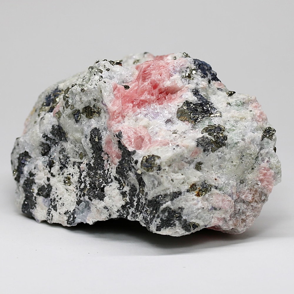 インカローズ結晶原石(ロードクロサイト)/フローライト&パイライト共生(総重量431g)¥28,000クイックガイド送料