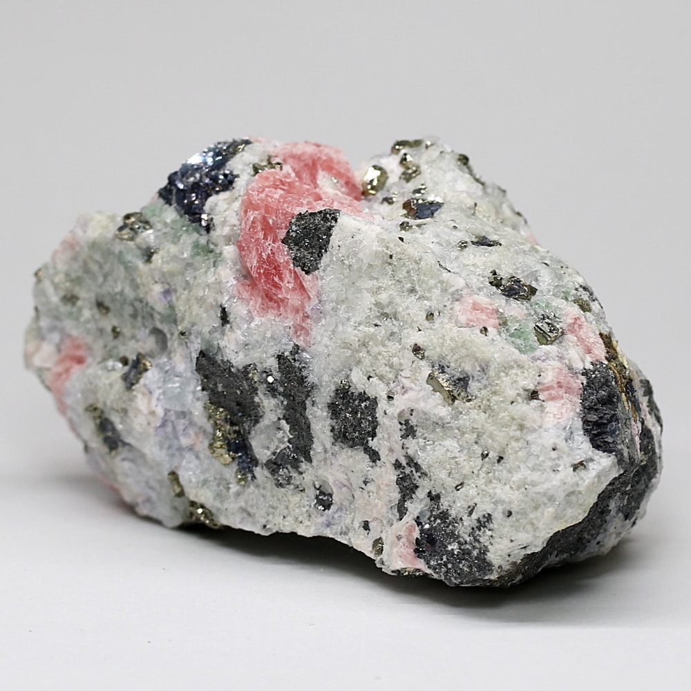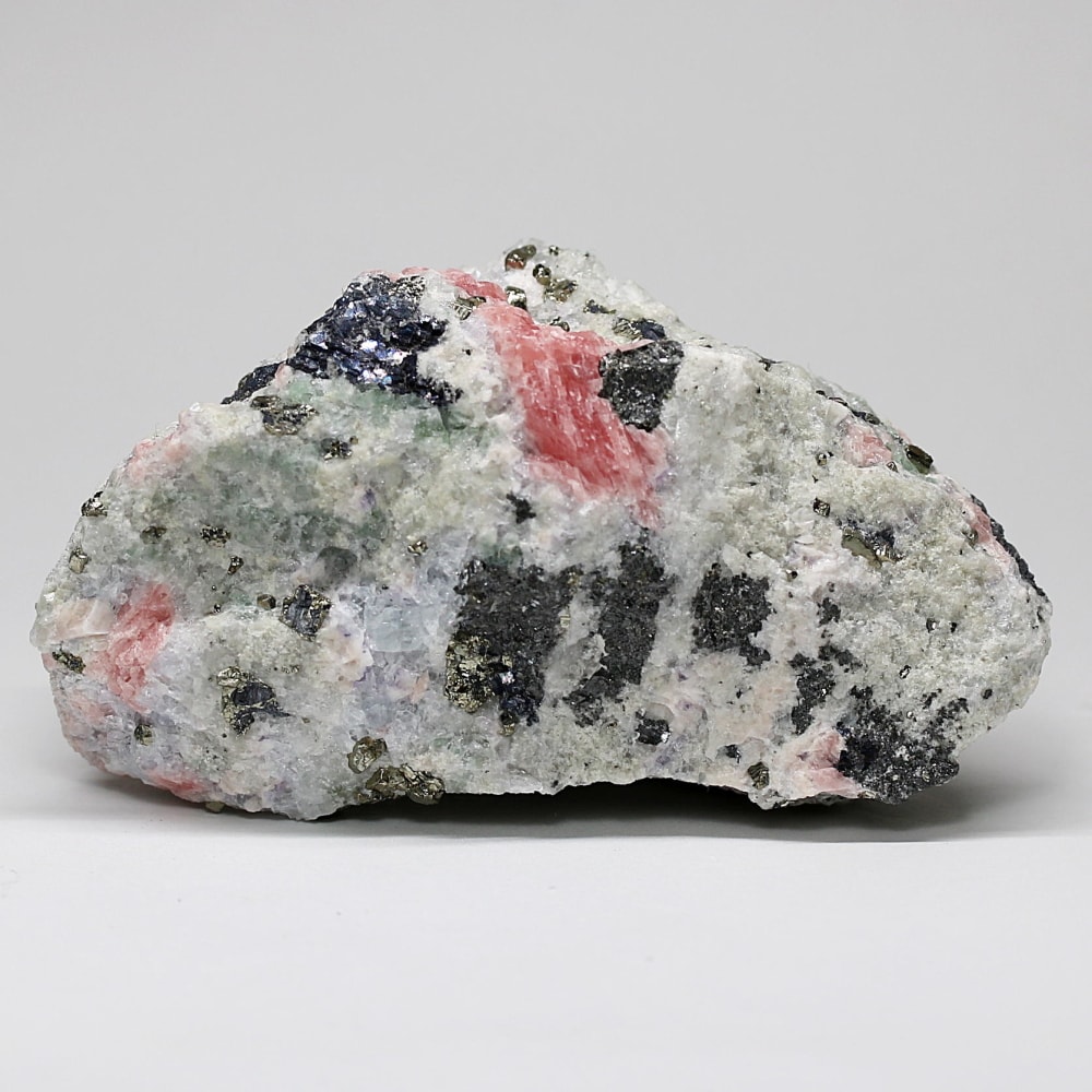 インカローズ結晶原石(ロードクロサイト)/フローライト&パイライト共生(総重量431g)